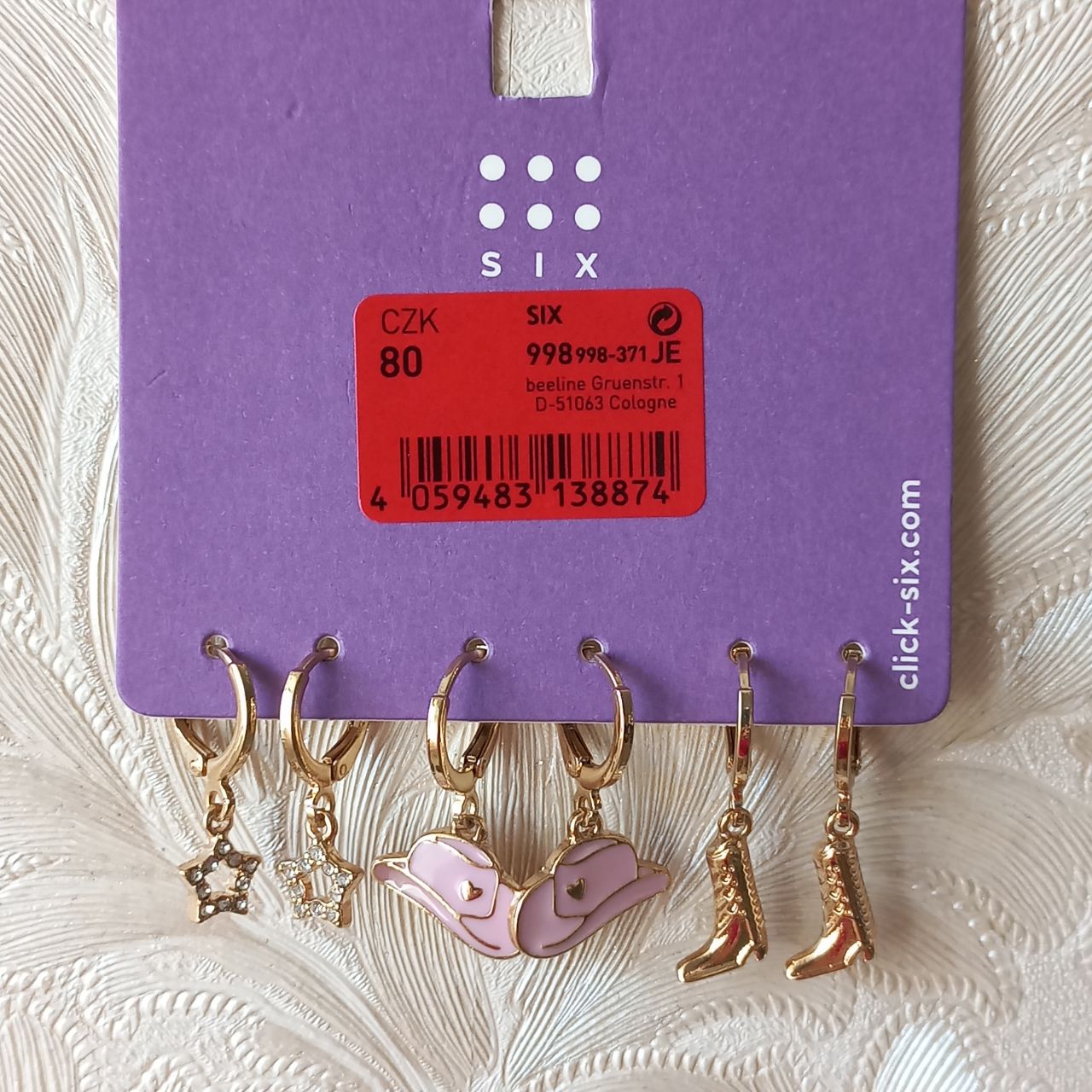 پک گوشواره طلایی آویز قفلی کلاه و چکمه و ستاره برند اروپایی six ضدحساسیت