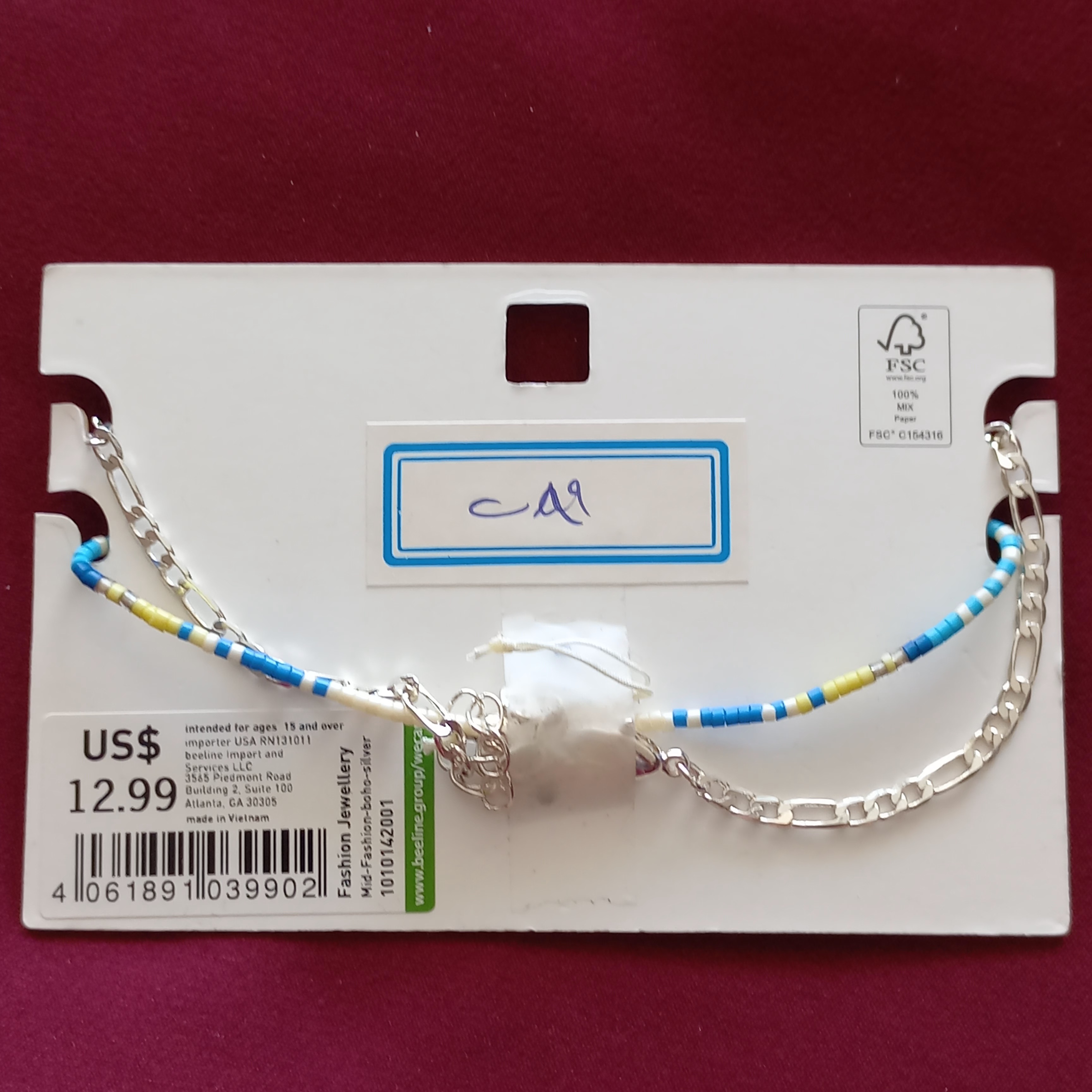 پابند زنانه دو ردیف زنجیر مهره رنگی برند اروپایی ضدحساسیت