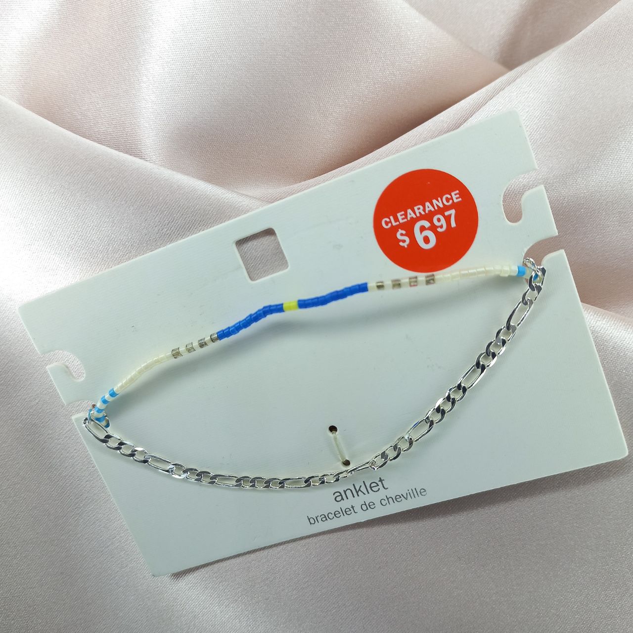 پابند زنانه دو ردیف زنجیر نقره ای و مهره رنگی برند اروپایی ضدحساسیت