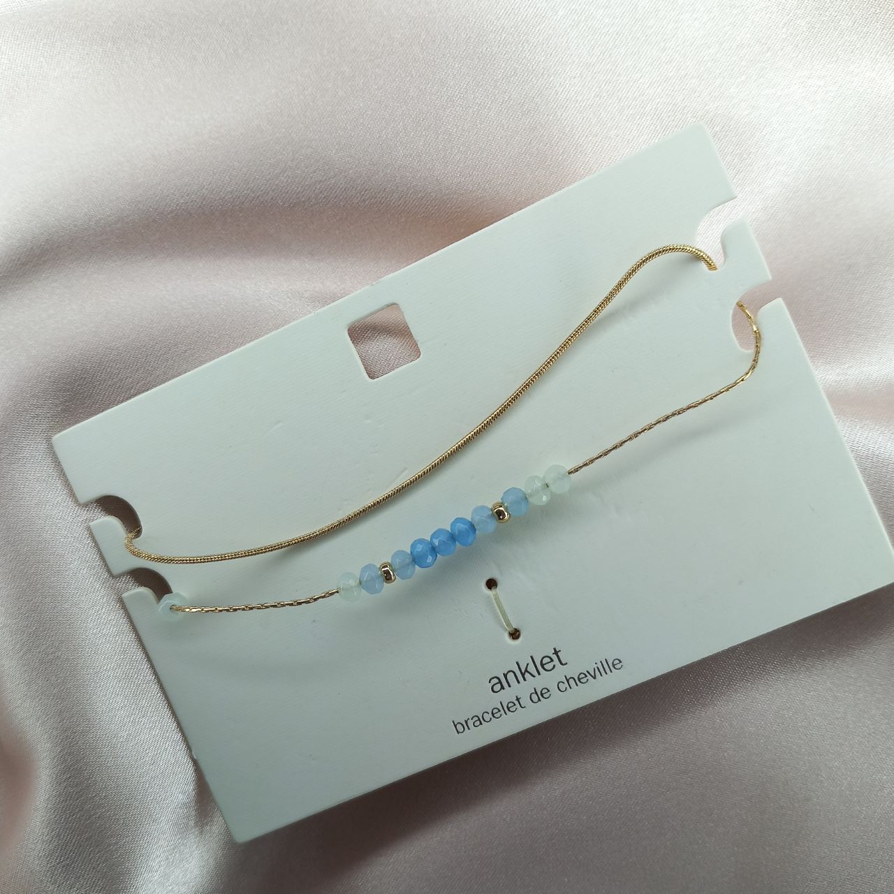پابند زنانه دو ردیف زنجیر طلایی سنگ آبی برند اروپایی ضدحساسیت