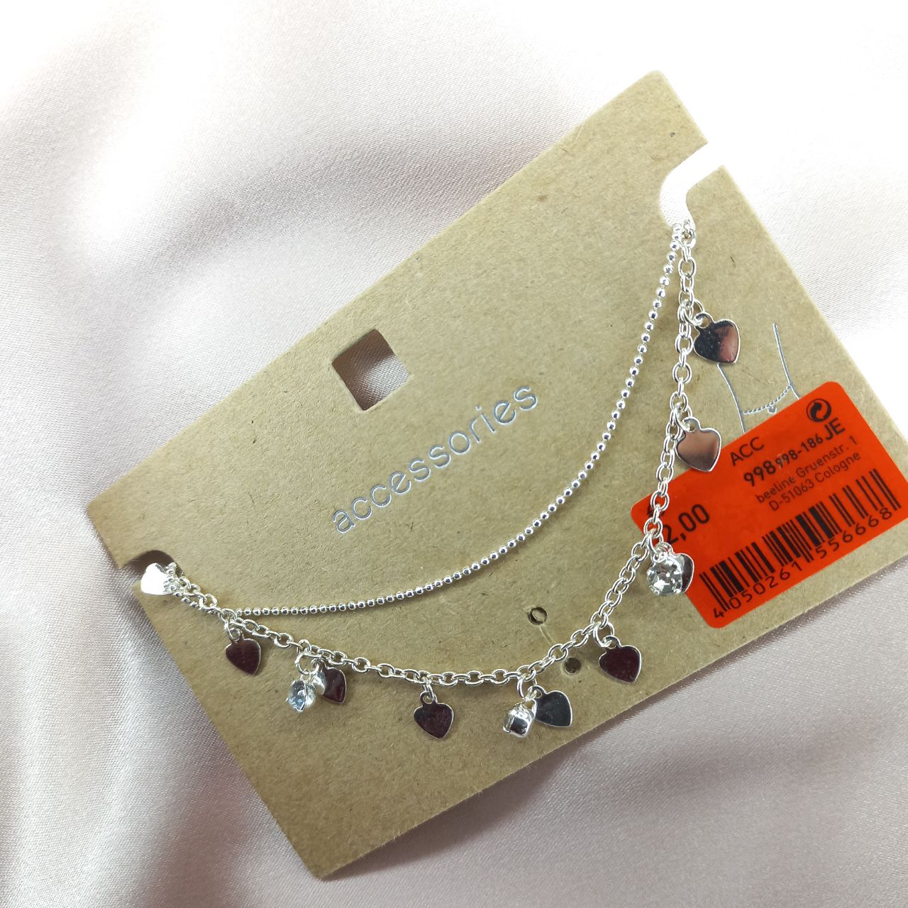 پابند زنانه دو ردیف نقره ای زنجیر و آویز قلب و نگین برند اروپایی accessories ضدحساسیت