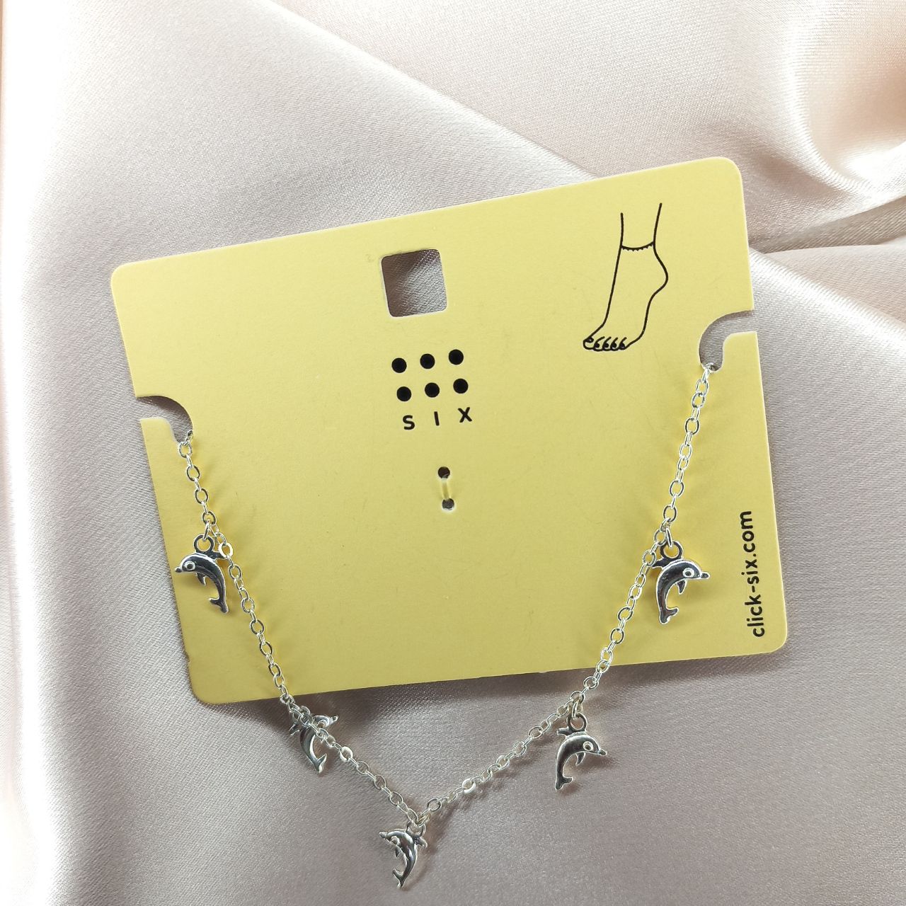 پابند زنانه زنجیری نقره ای آویز دلفین برند اروپایی six ضدحساسیت