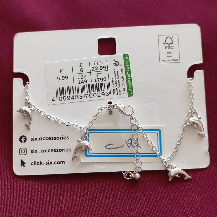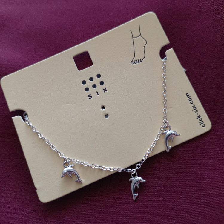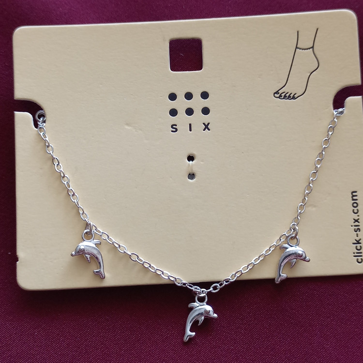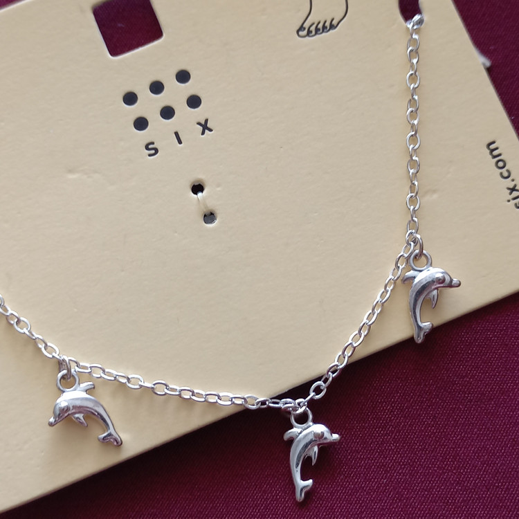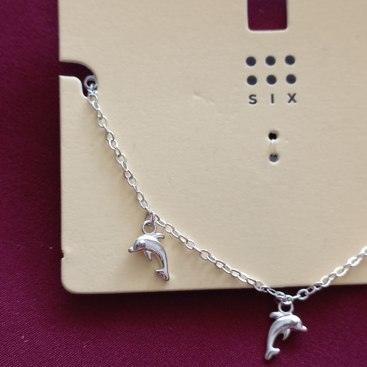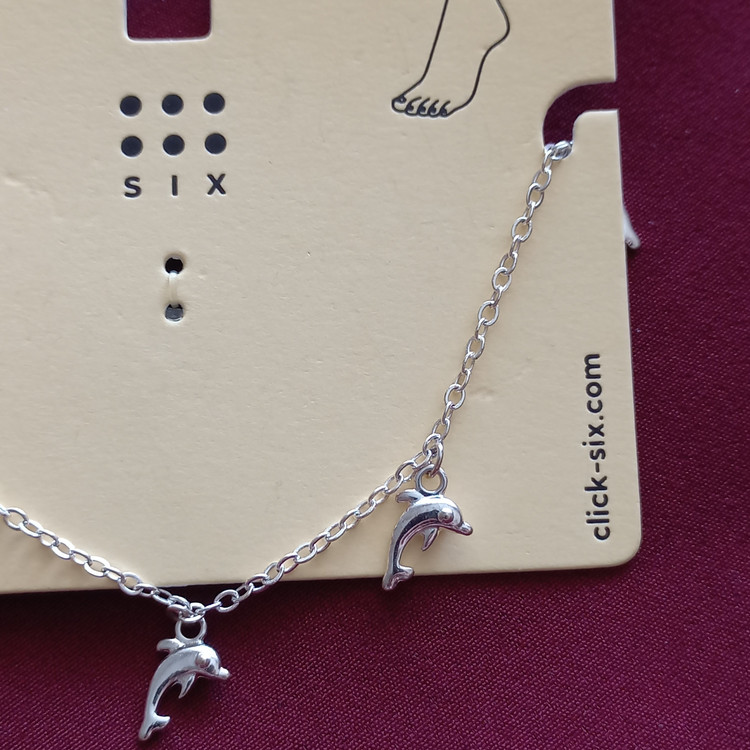 پابند زنانه زنجیری نقره ای آویز دلفین برند اروپایی six ضدحساسیت