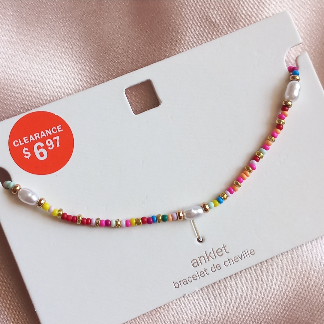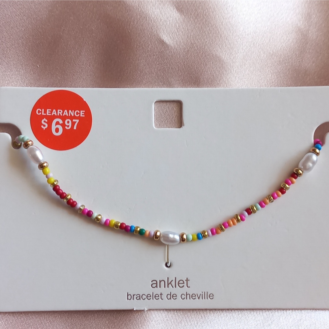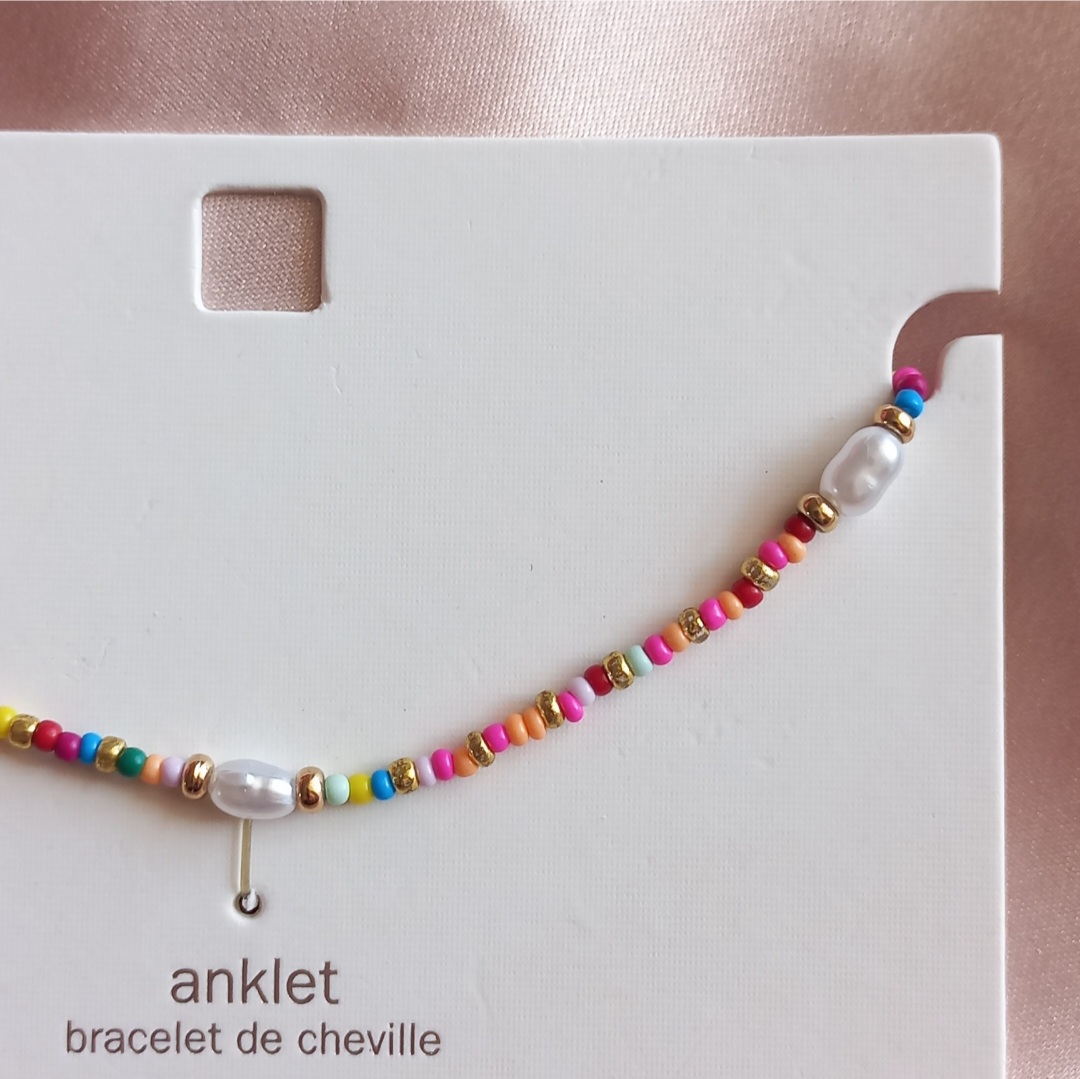 پابند زنانه زنجیر طلایی مهره رنگی و مروارید برند اروپایی ضدحساسیت
