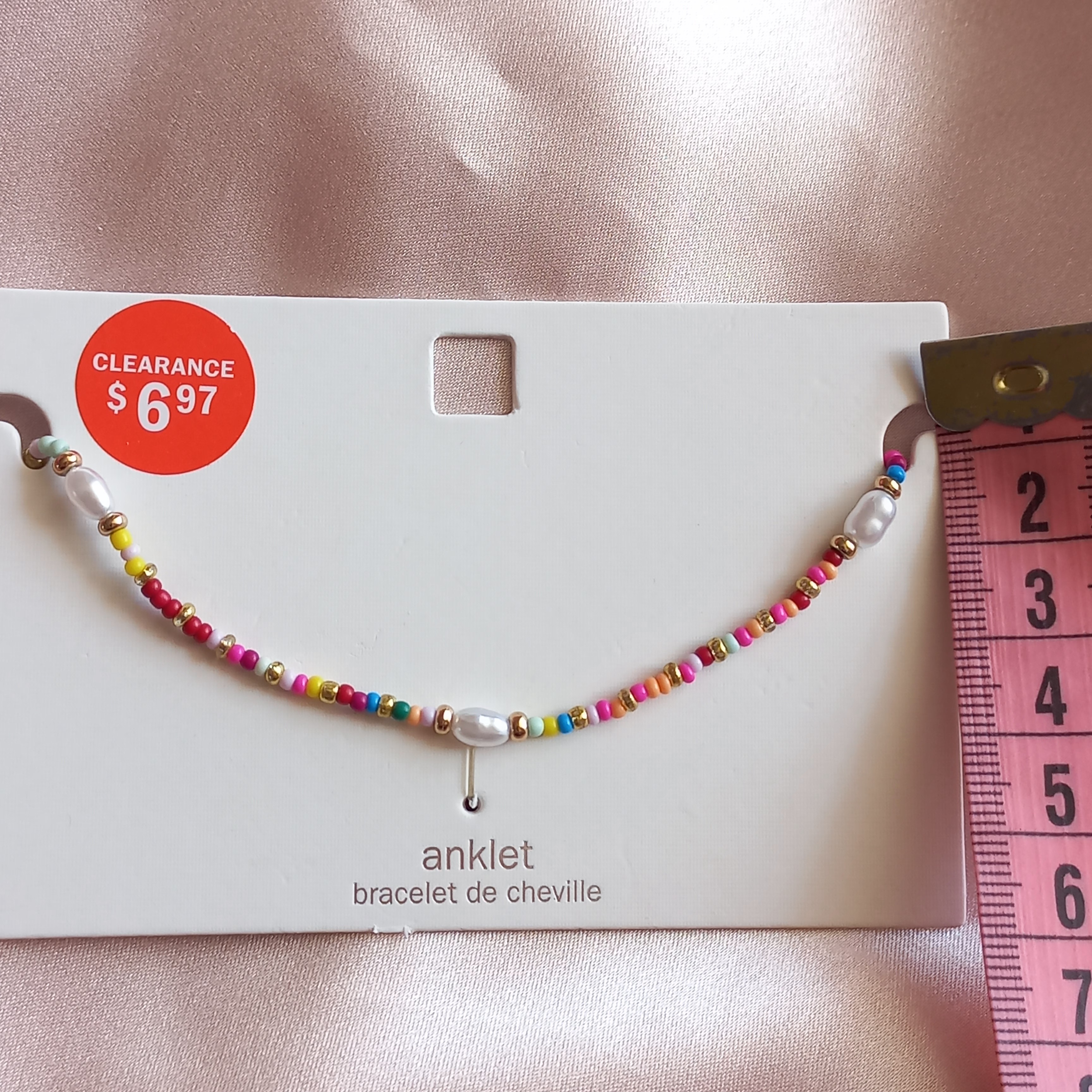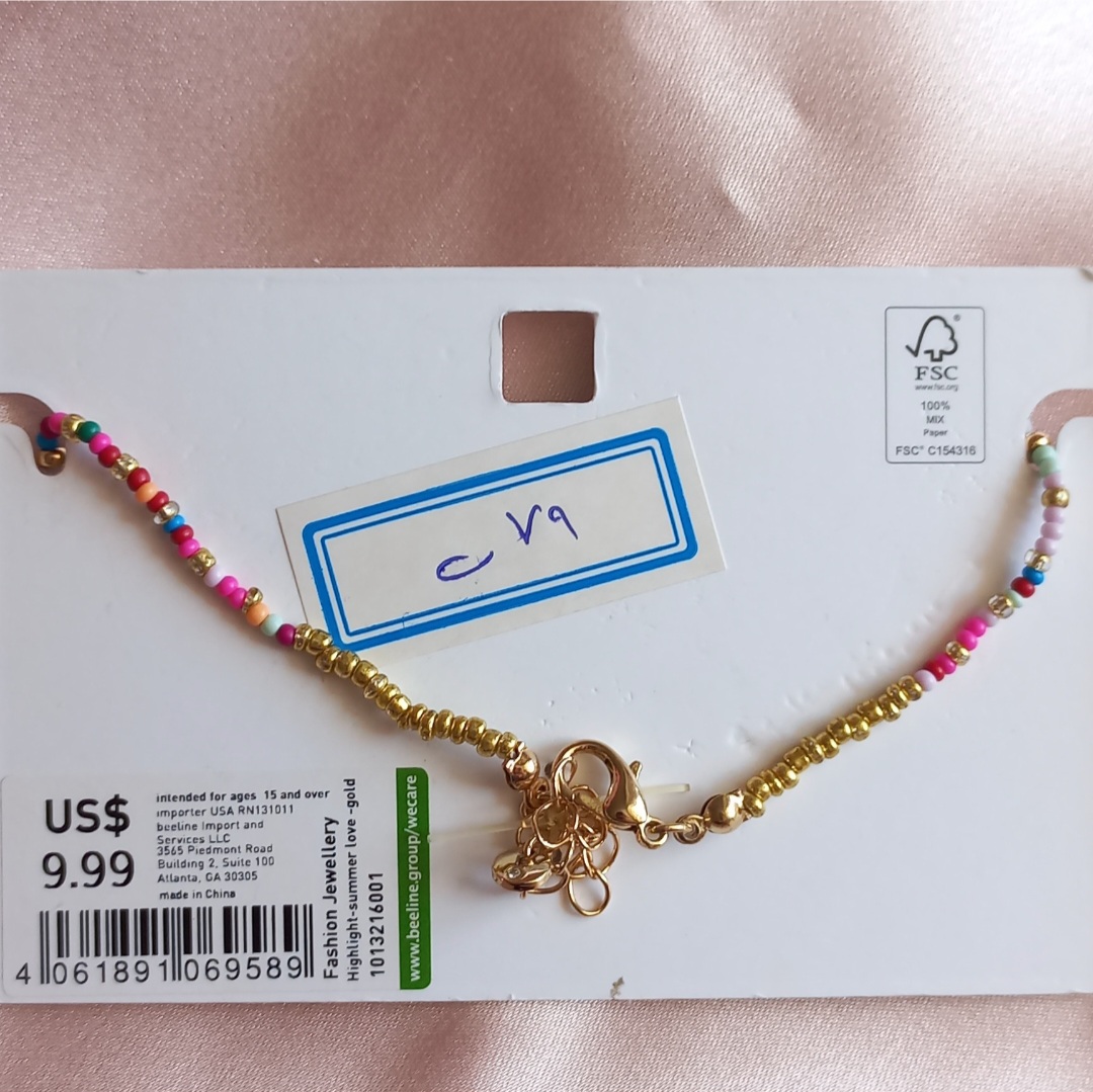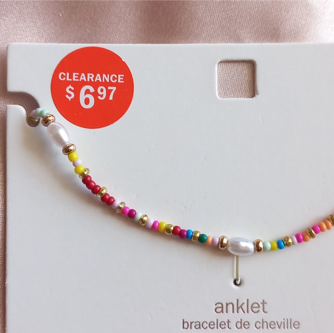 پابند زنانه زنجیر طلایی مهره رنگی و مروارید برند اروپایی ضدحساسیت