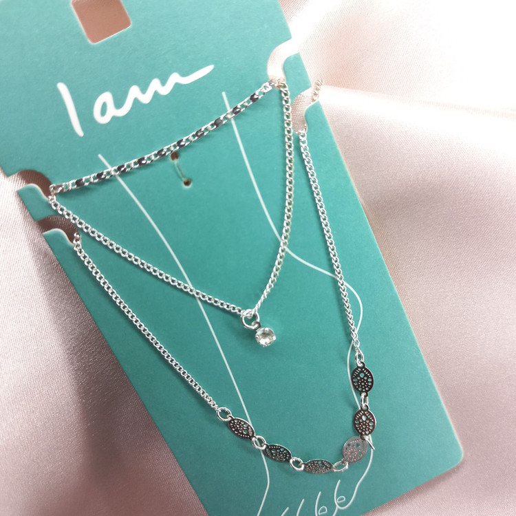 پابند زنانه سه ردیف زنجیری نقره ای آویز نگین برند اروپایی Iam ضدحساسیت