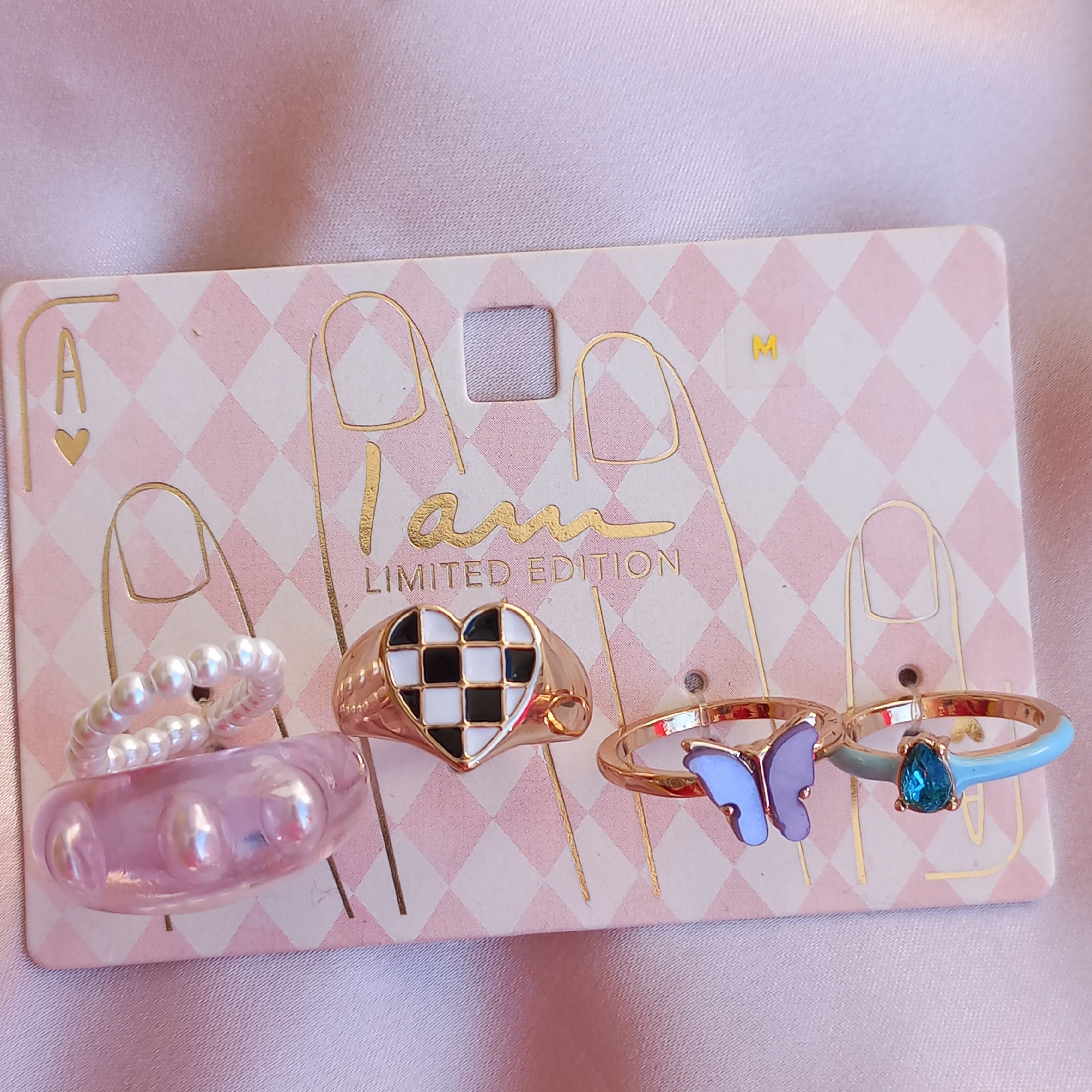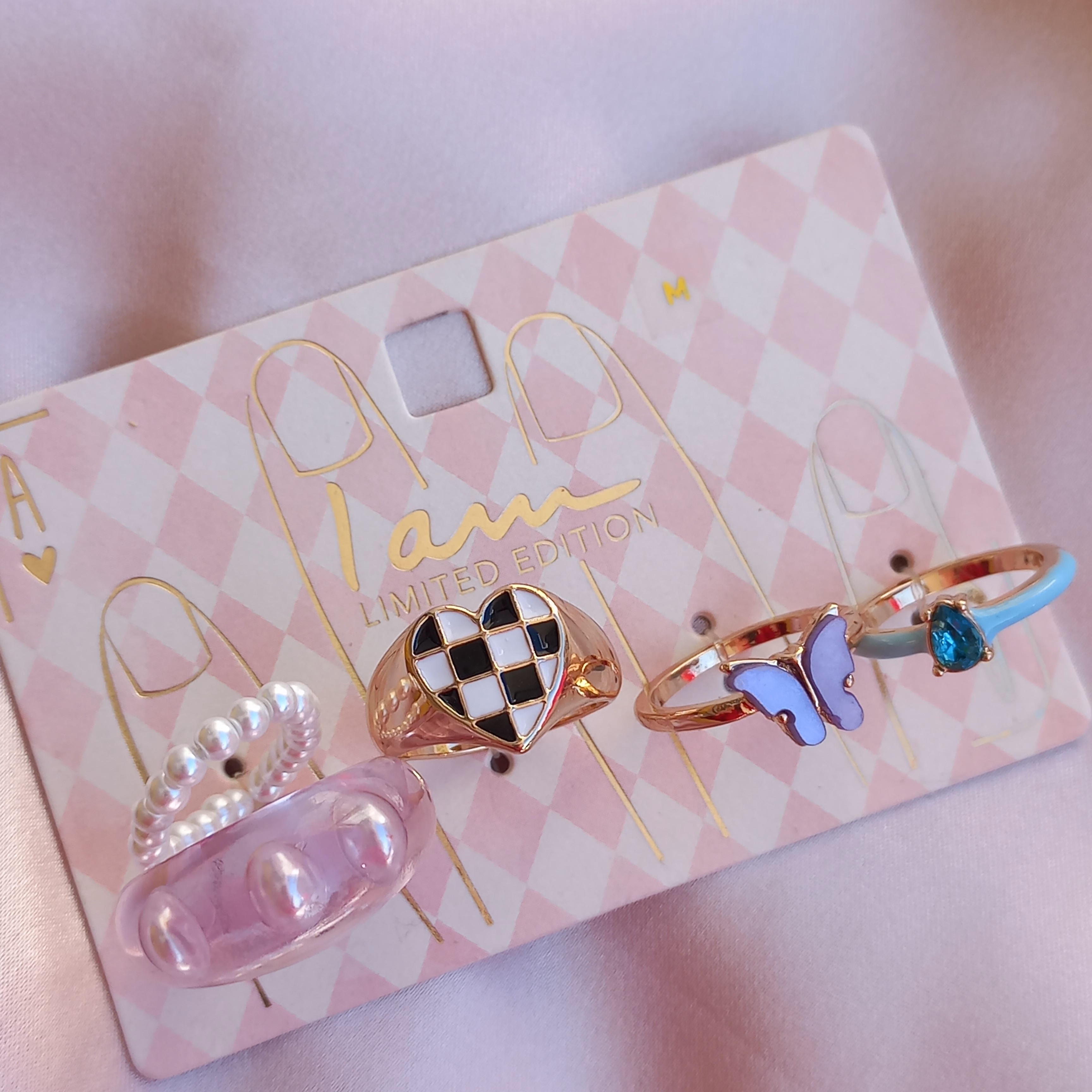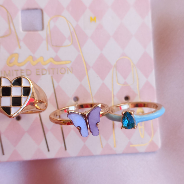 پک انگشتر زنانه قلب و پروانه و نگین و مروارید طلایی برند اروپایی Iam ضدحساسیت