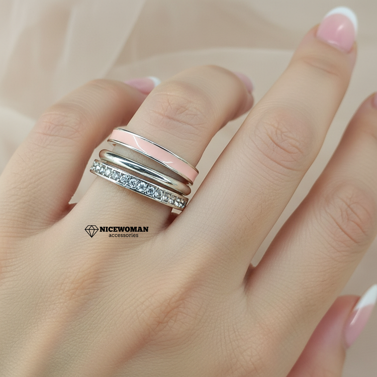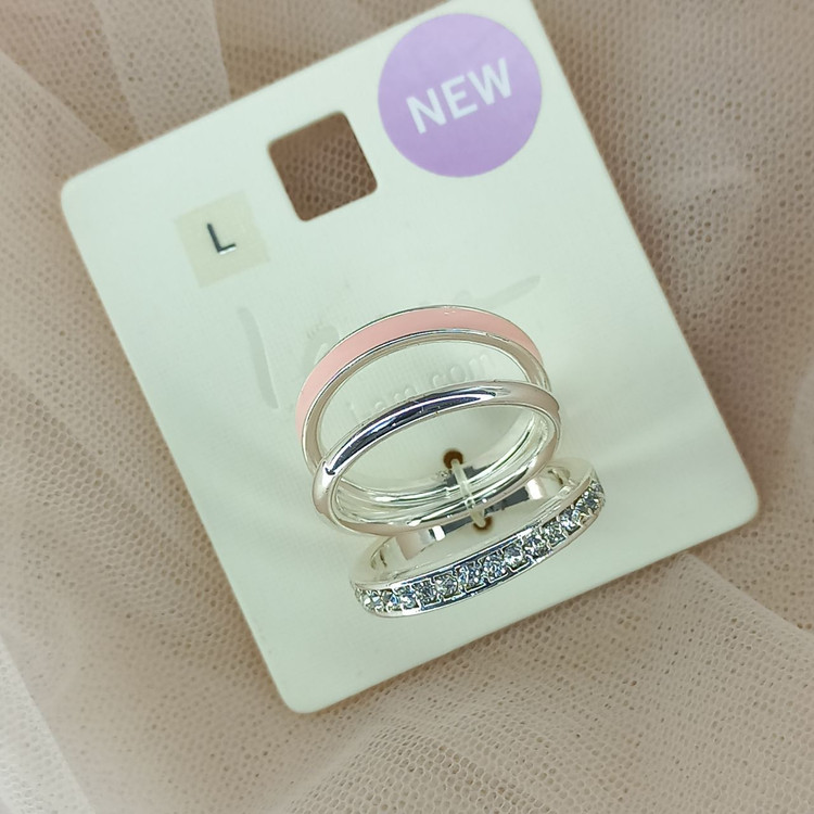 پک انگشتر نقره ای صورتی نگین دار برند اروپایی Iam ضدحساسیت