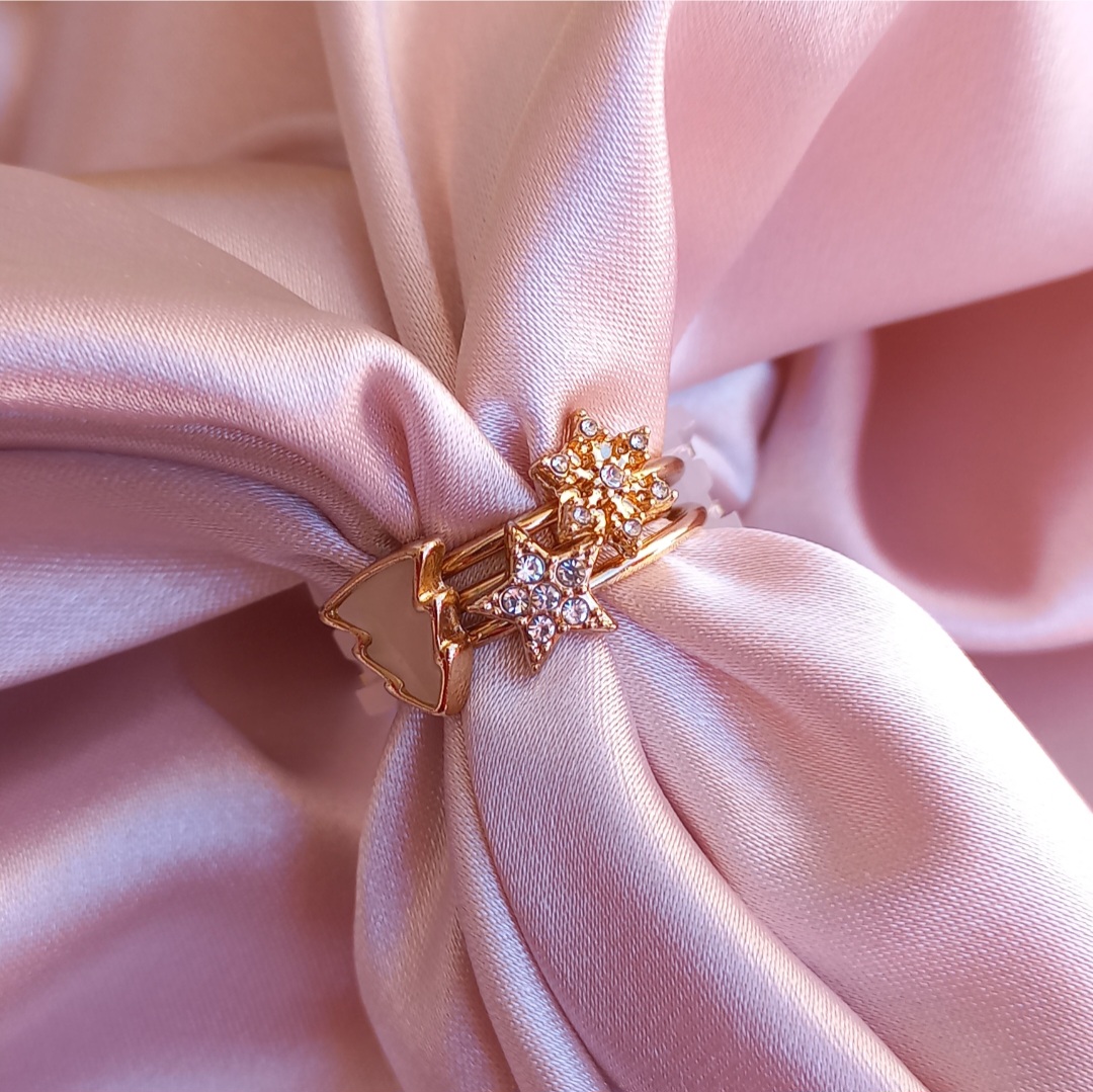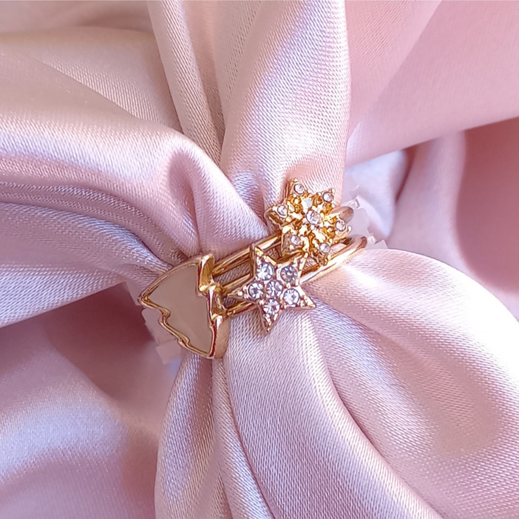 پک انگشتر زنانه کاج ستاره سنگ نگین طلایی برند اروپایی ضدحساسیت