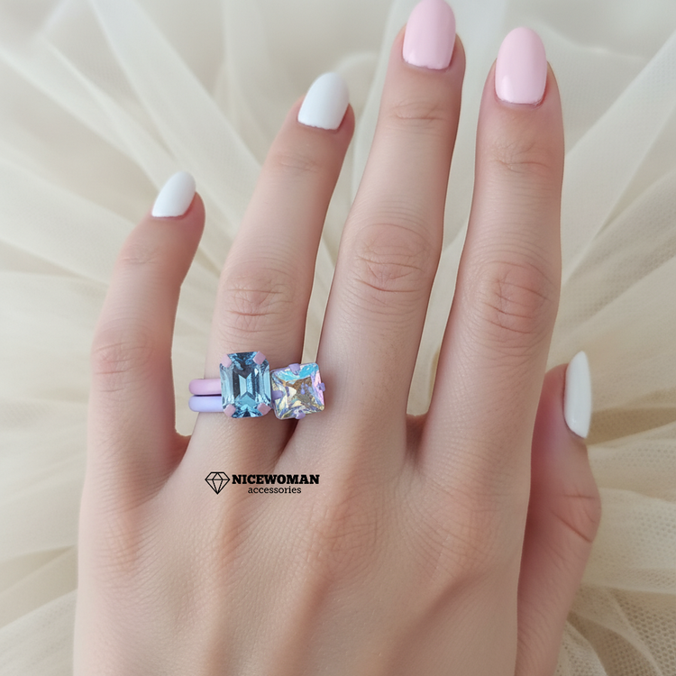 پک انگشتر یاسی صورتی نگین آبی و مولتی کالر اروپایی ضدحساسیت