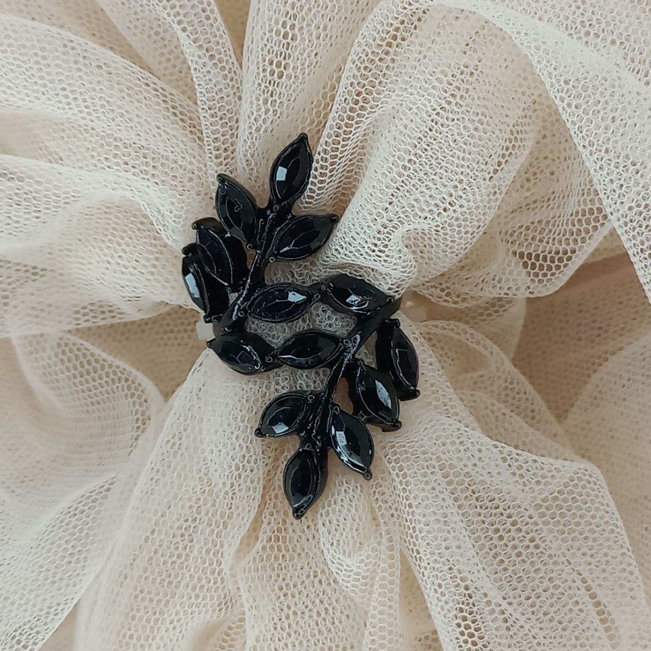 انگشتر مشکی طرح برگ نگین مشکی اروپایی ضدحساسیت