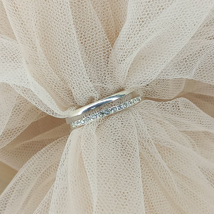 انگشتر نقره ای طرح دو ردیف ساده و نگین برند اروپایی ضدحساسیت