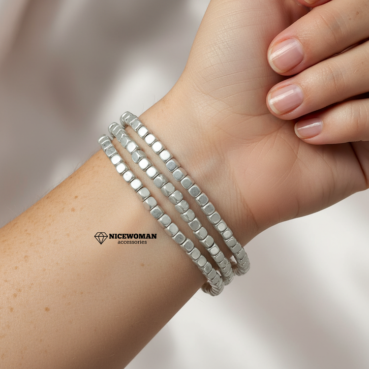 پک دستبند زنانه کشی مهره نقره ای برند اروپایی ضدحساسیت