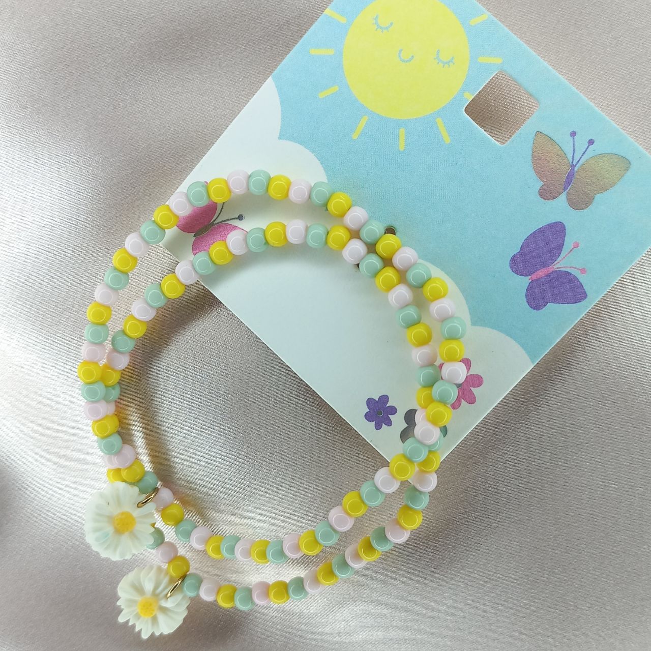 پک دستبند زنانه کشی مهره رنگی آویز بابونه برند اروپایی ضدحساسیت