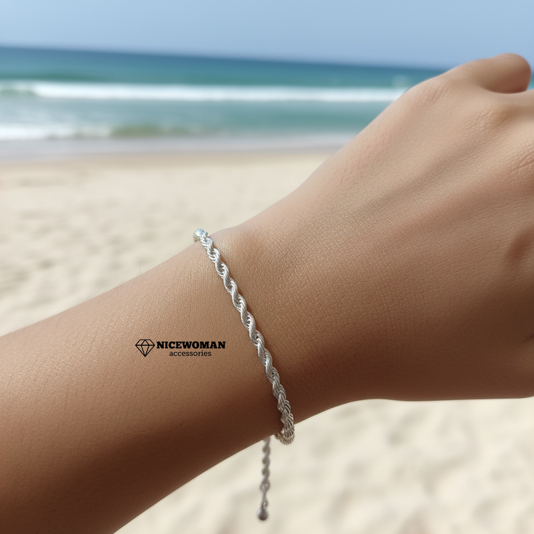 دستبند زنانه طنابی نقره ای قفل آسانسوری برند اروپایی ضدحساسیت