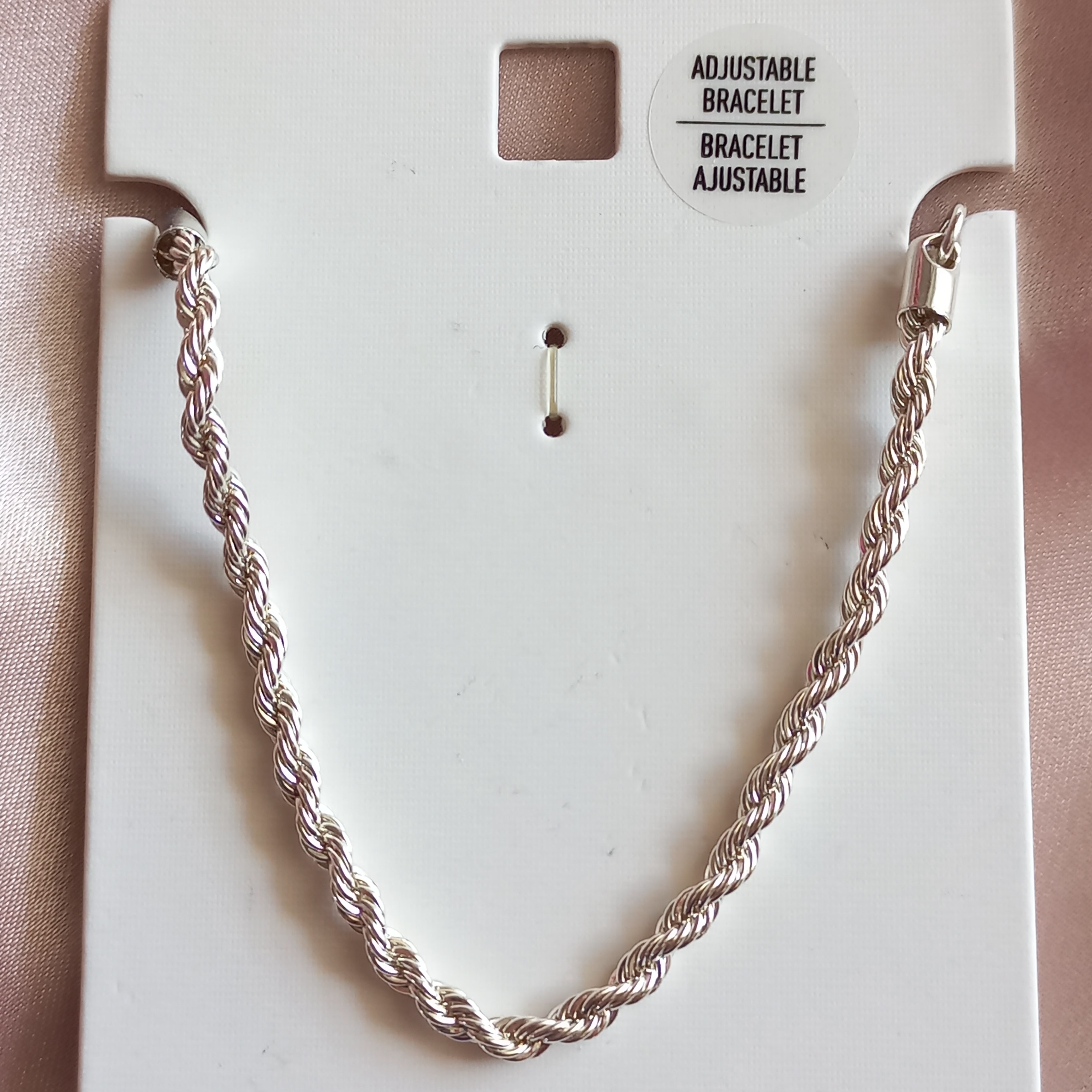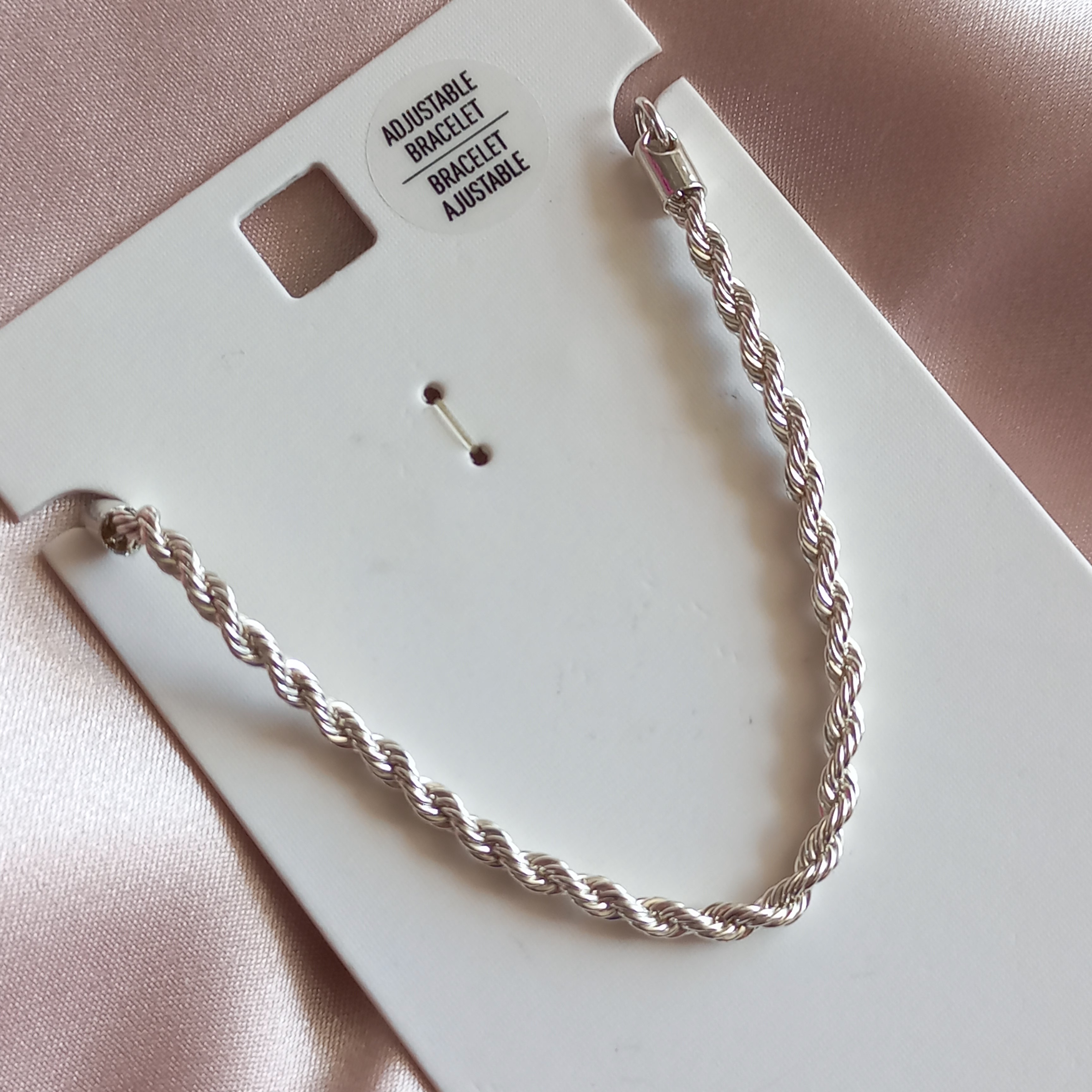 دستبند زنانه طنابی نقره ای قفل آسانسوری برند اروپایی ضدحساسیت