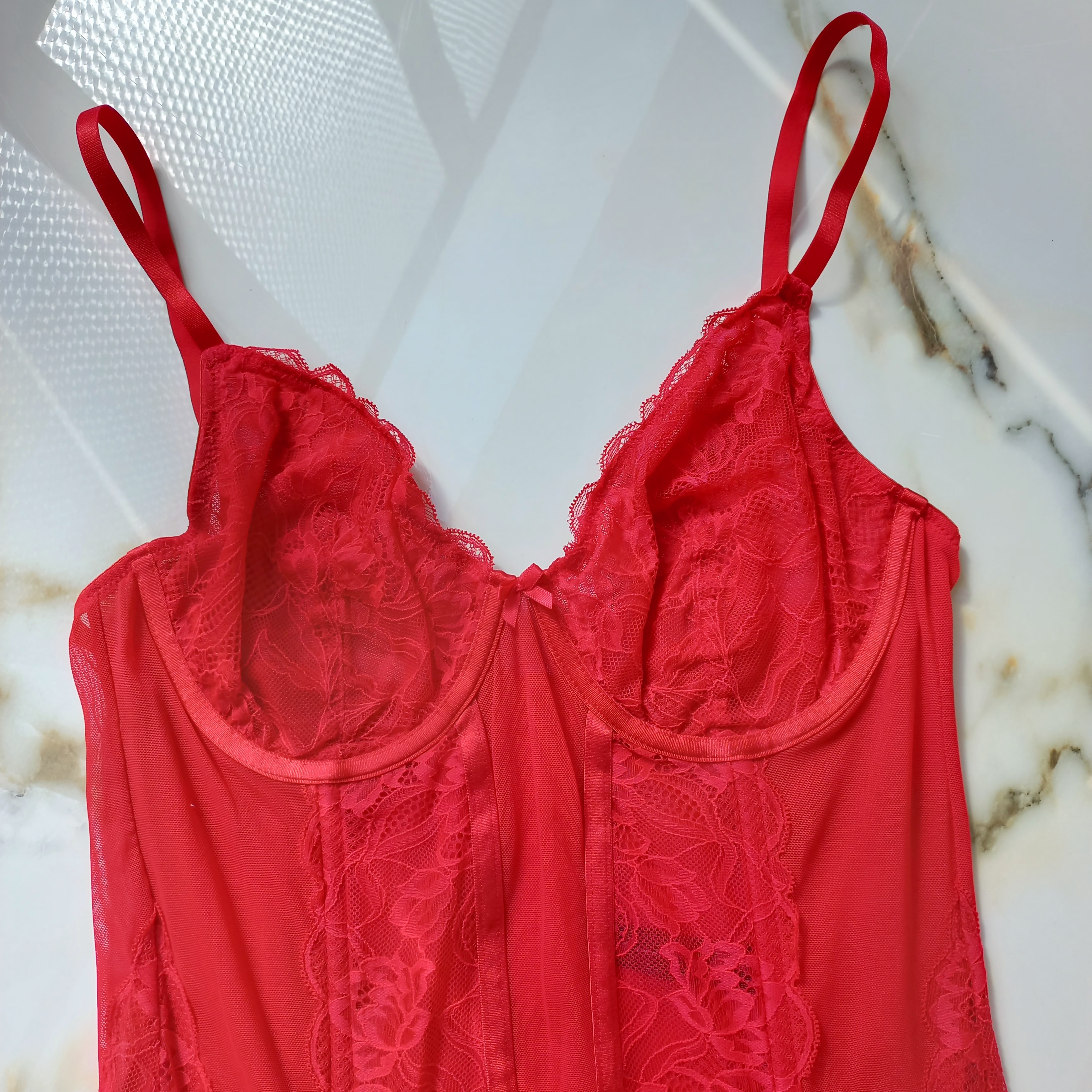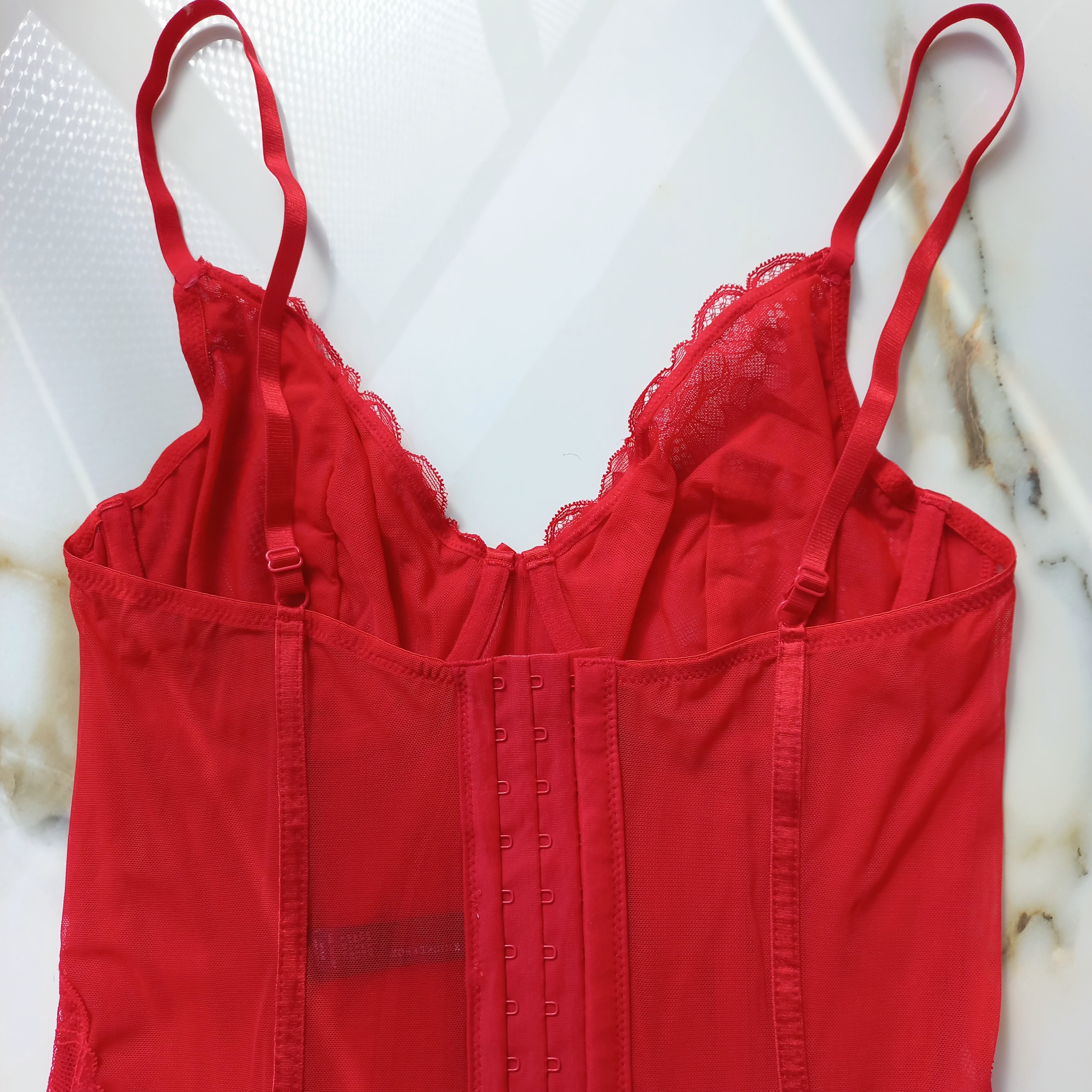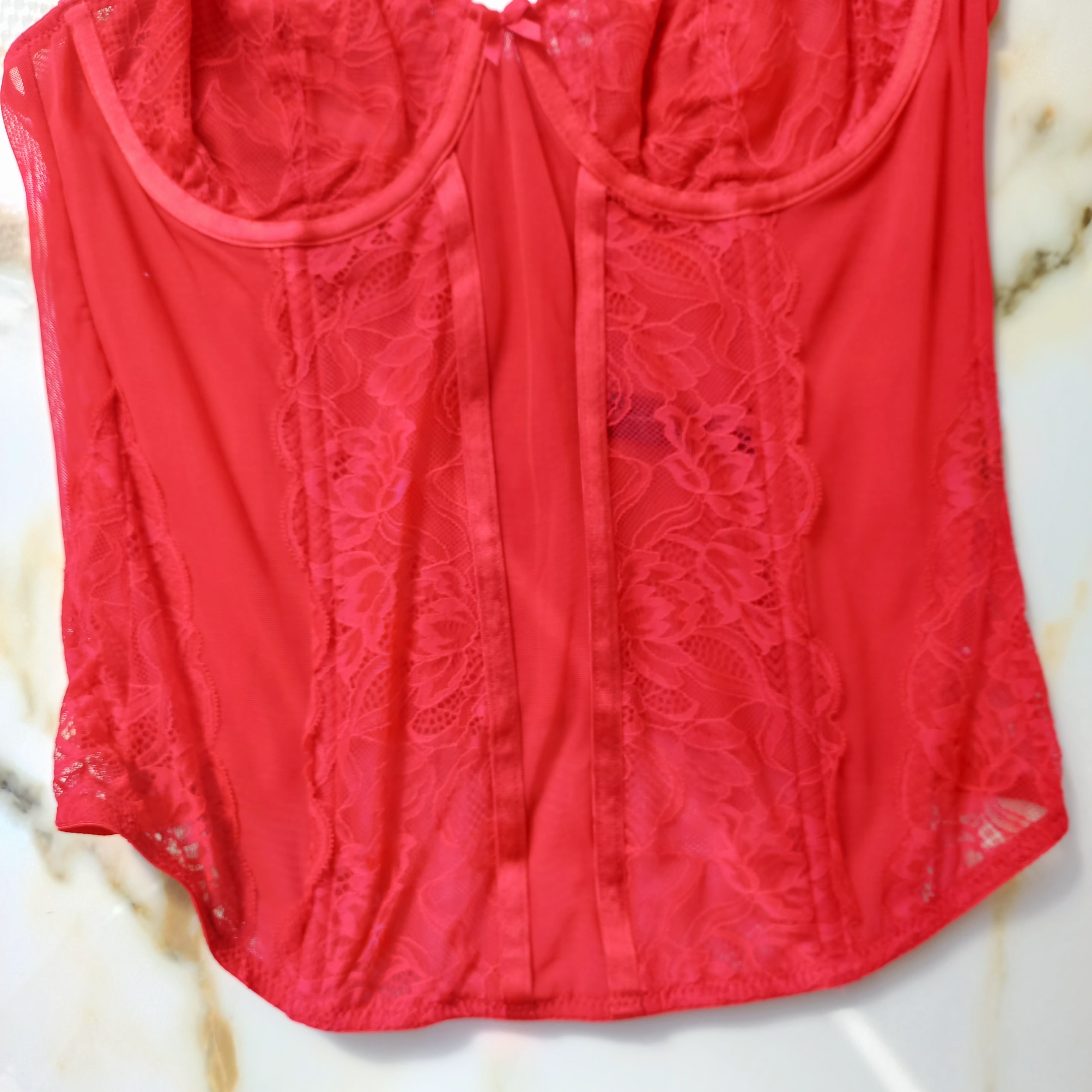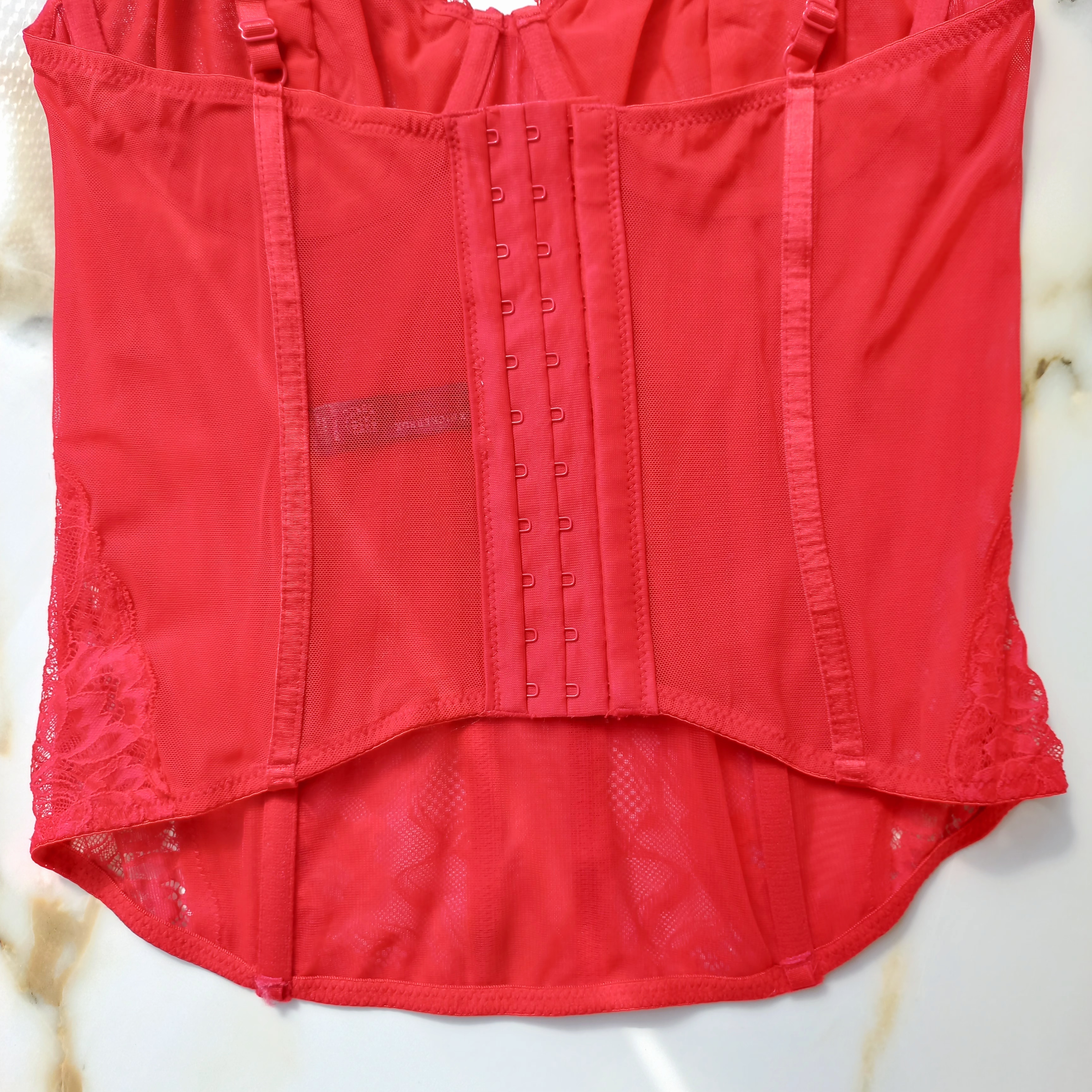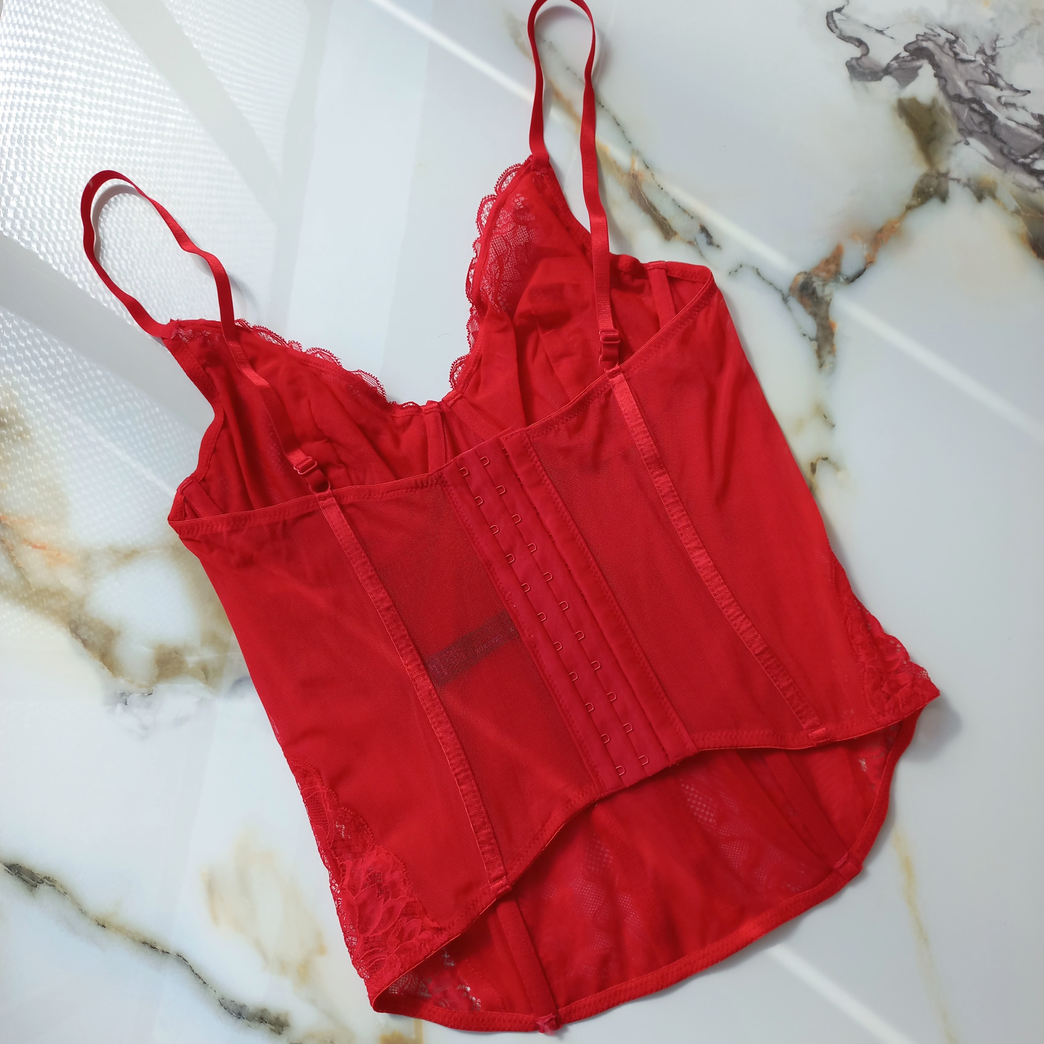 تاپ کورست زنانه کاپ دار فنردار توری قرمز برند اروپایی