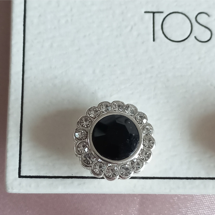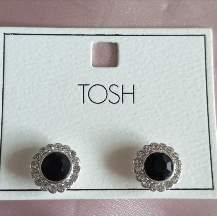 گوشواره زنانه میخی گل نقره ای نگین و سنگ مشکی برند اروپایی TOSH ضدحساسیت