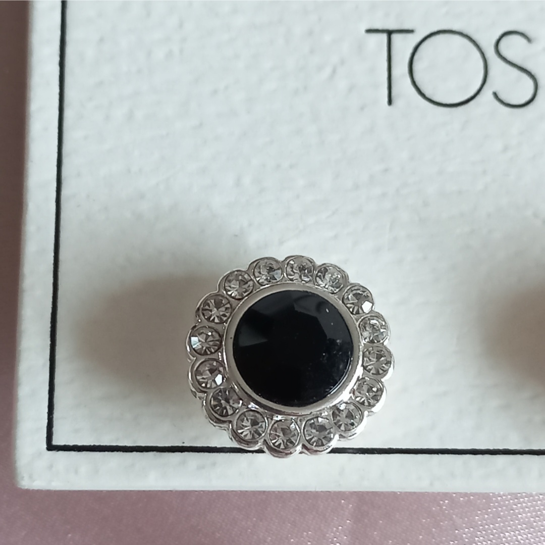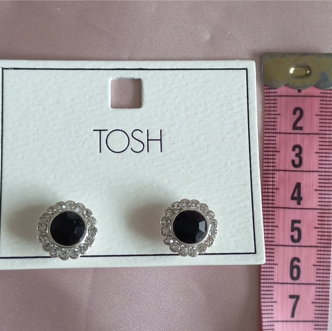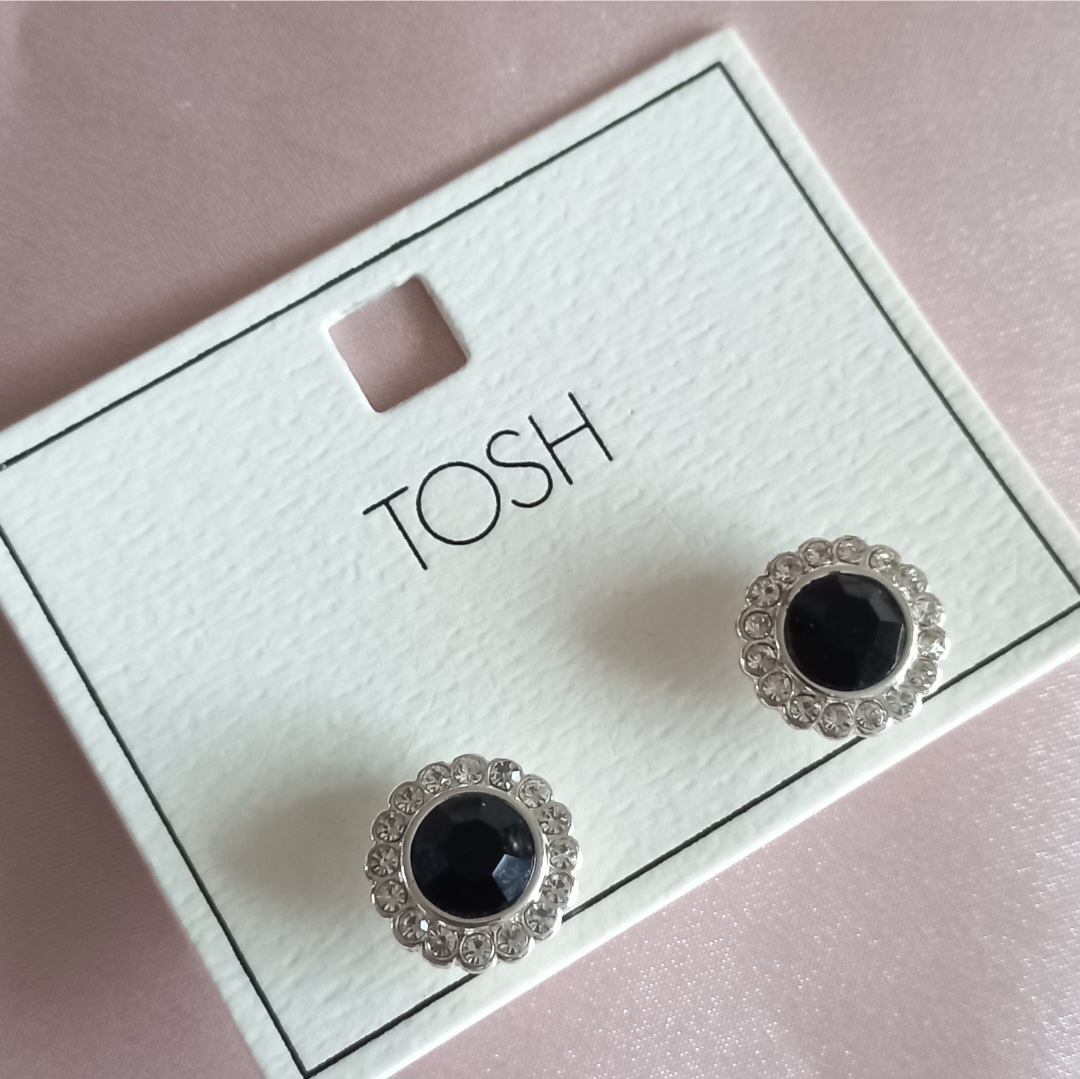 گوشواره زنانه میخی گل نقره ای نگین و سنگ مشکی برند اروپایی TOSH ضدحساسیت