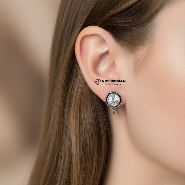 گوشواره زنانه کلیپسی نقره ای نگین دار برند اروپایی Iam ضدحساسیت