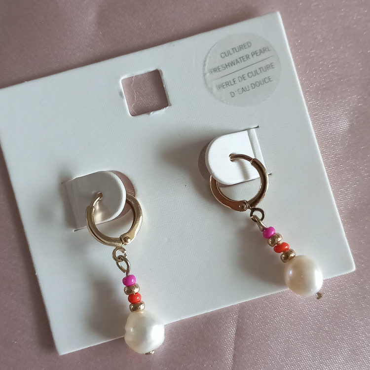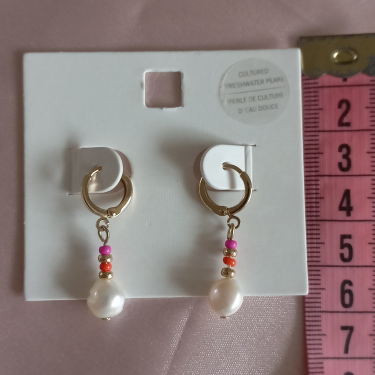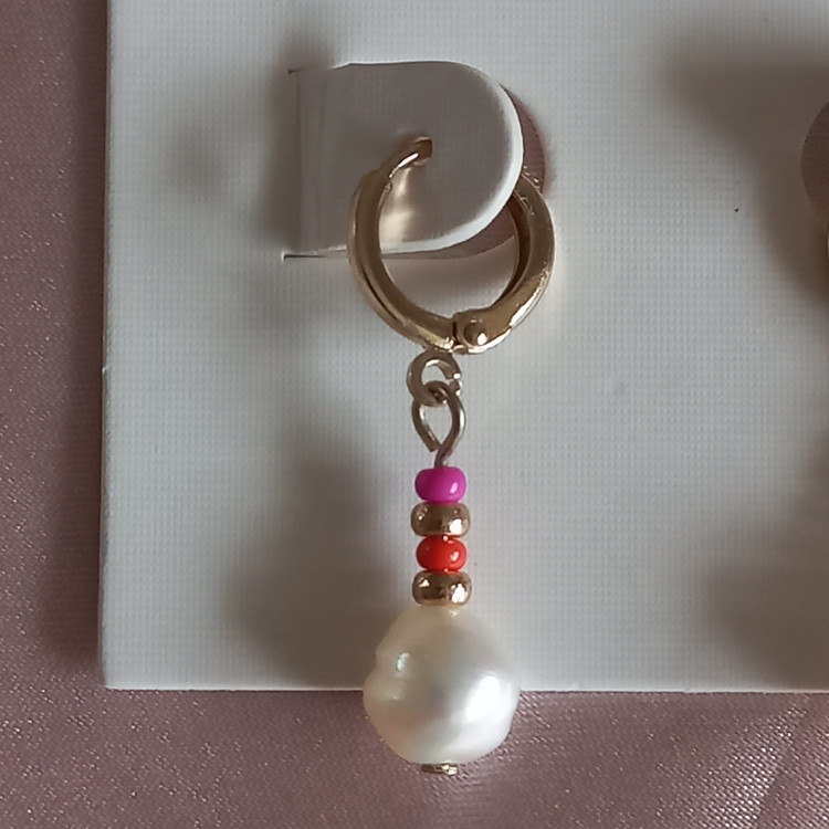 گوشواره زنانه آویز قفلی مروارید و مهره رنگی برند اروپایی ضدحساسیت