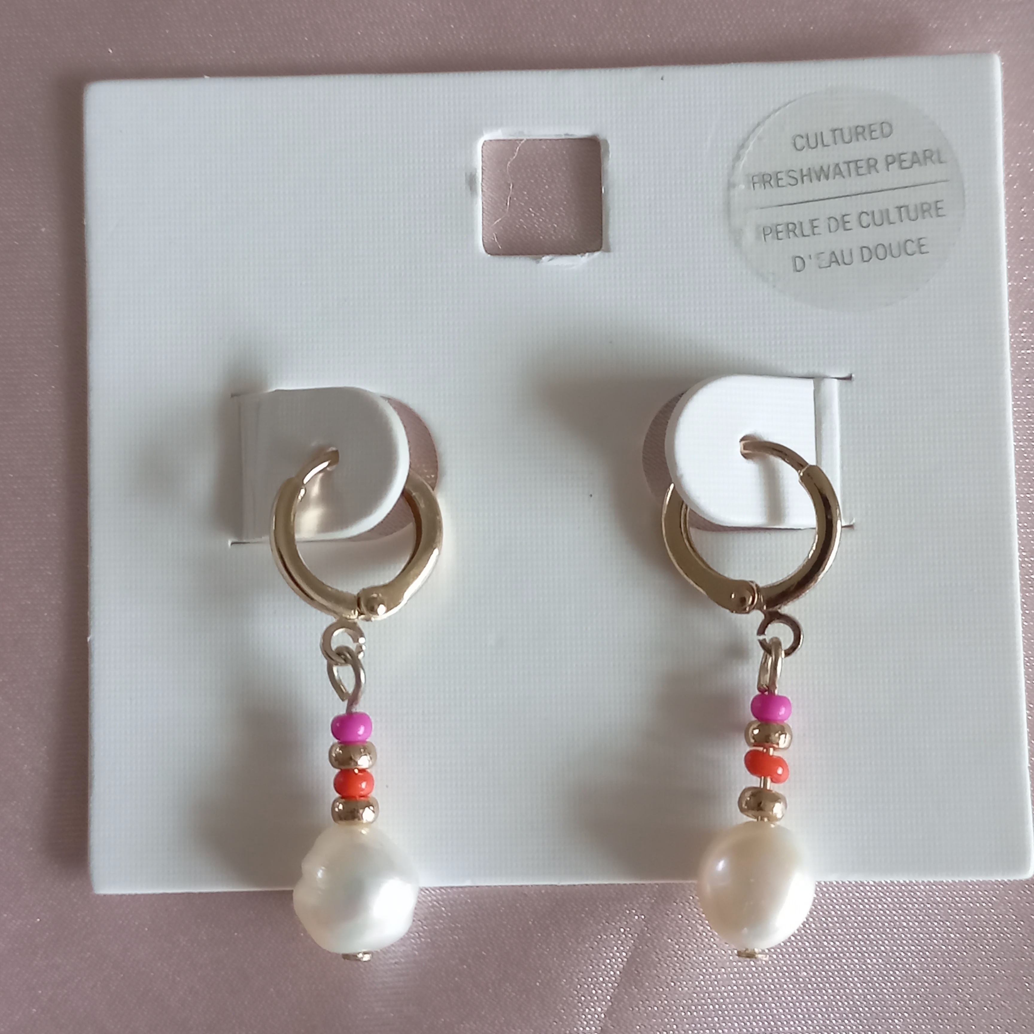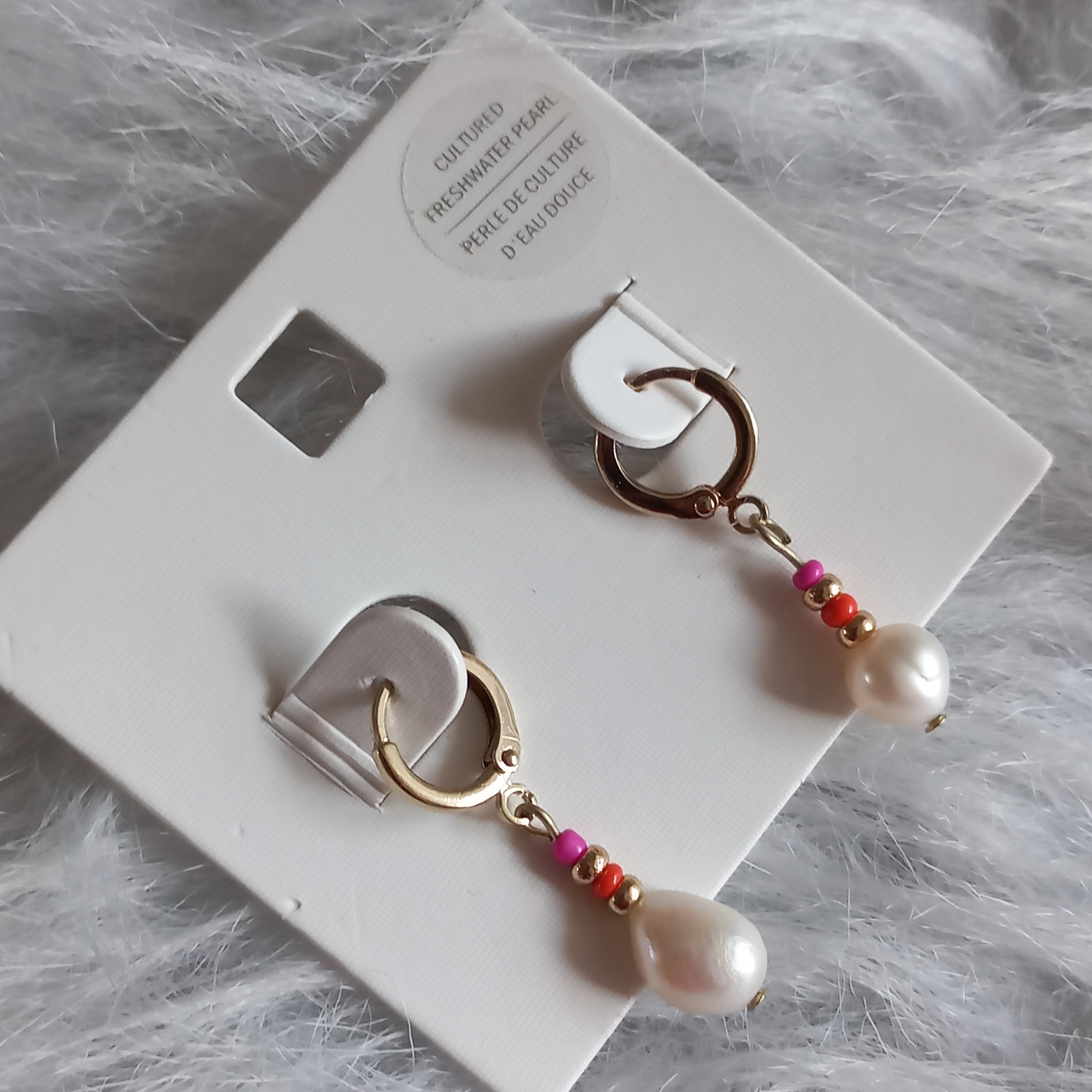 گوشواره زنانه آویز قفلی مروارید و مهره رنگی برند اروپایی ضدحساسیت