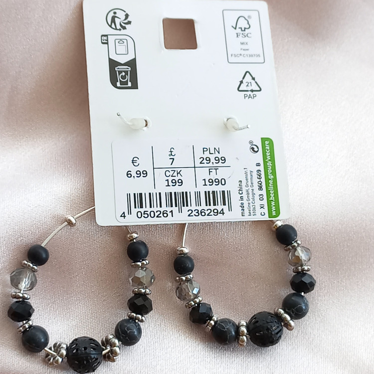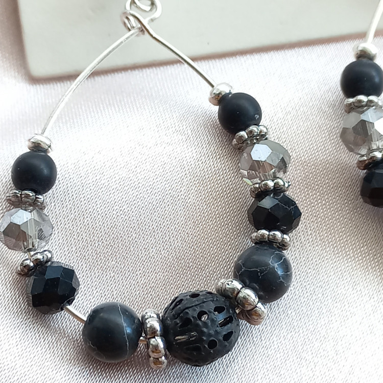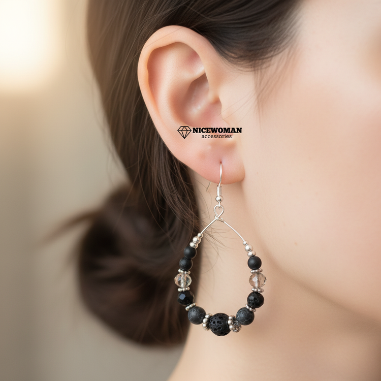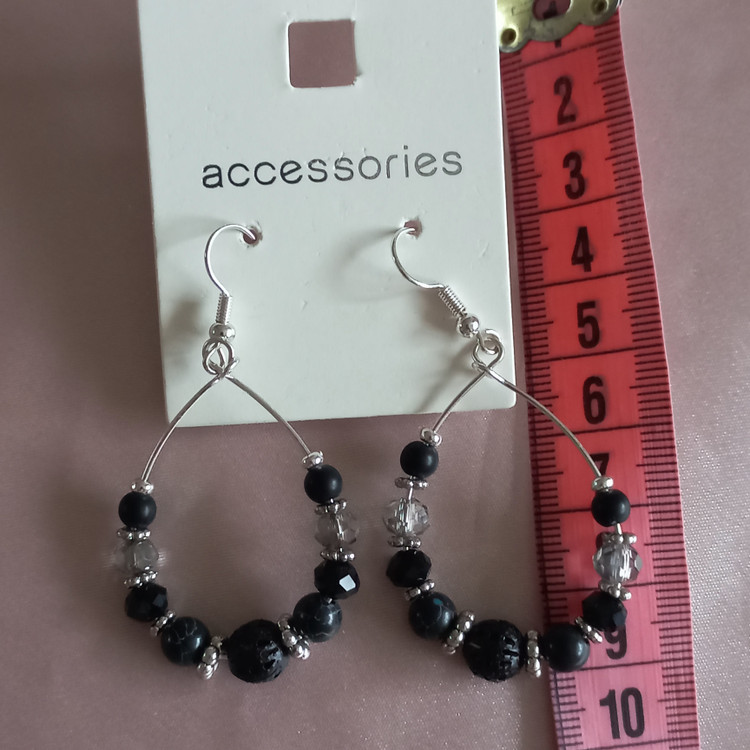 گوشواره زنانه آویز نقره ای مهره مشکی برند اروپایی accessories ضدحساسیت