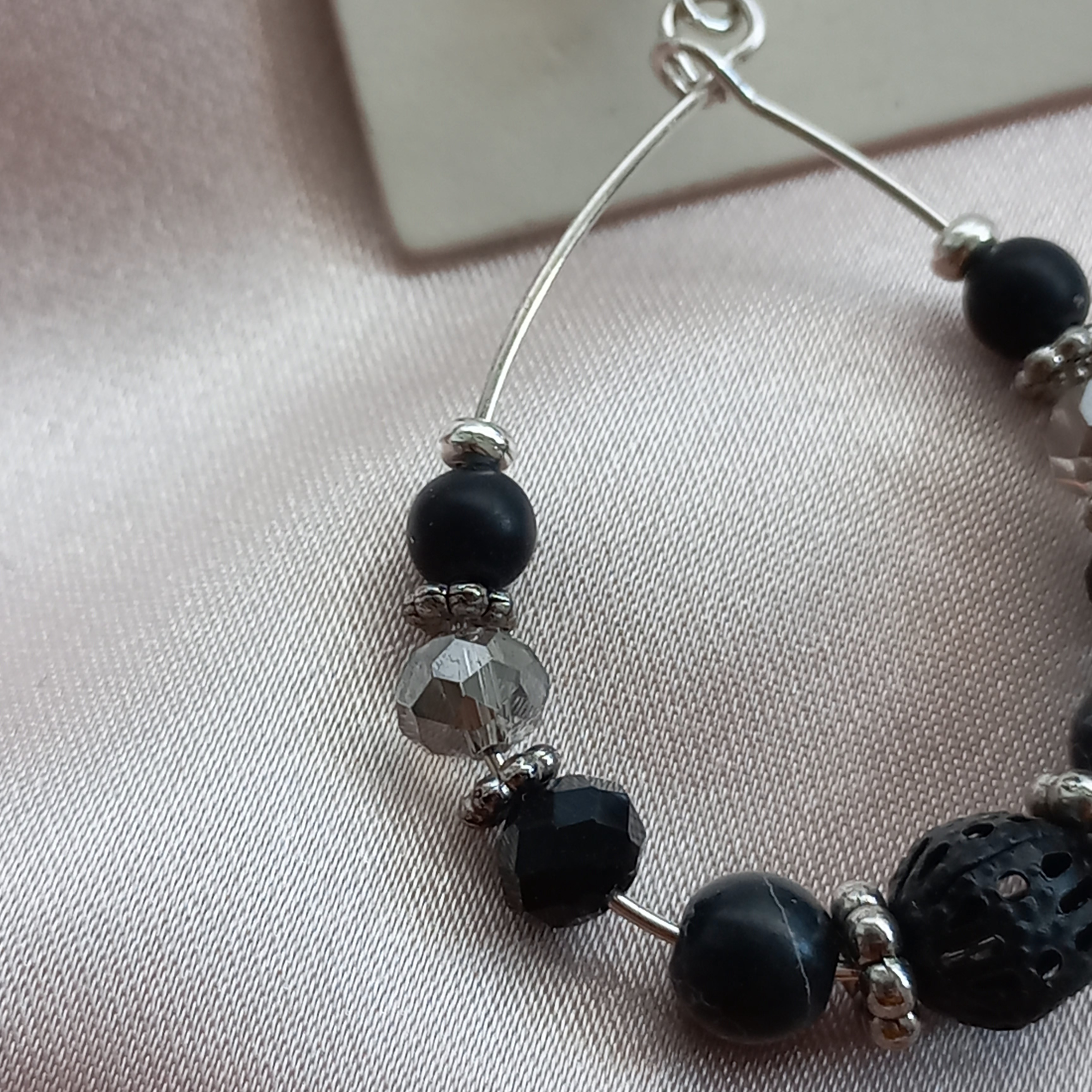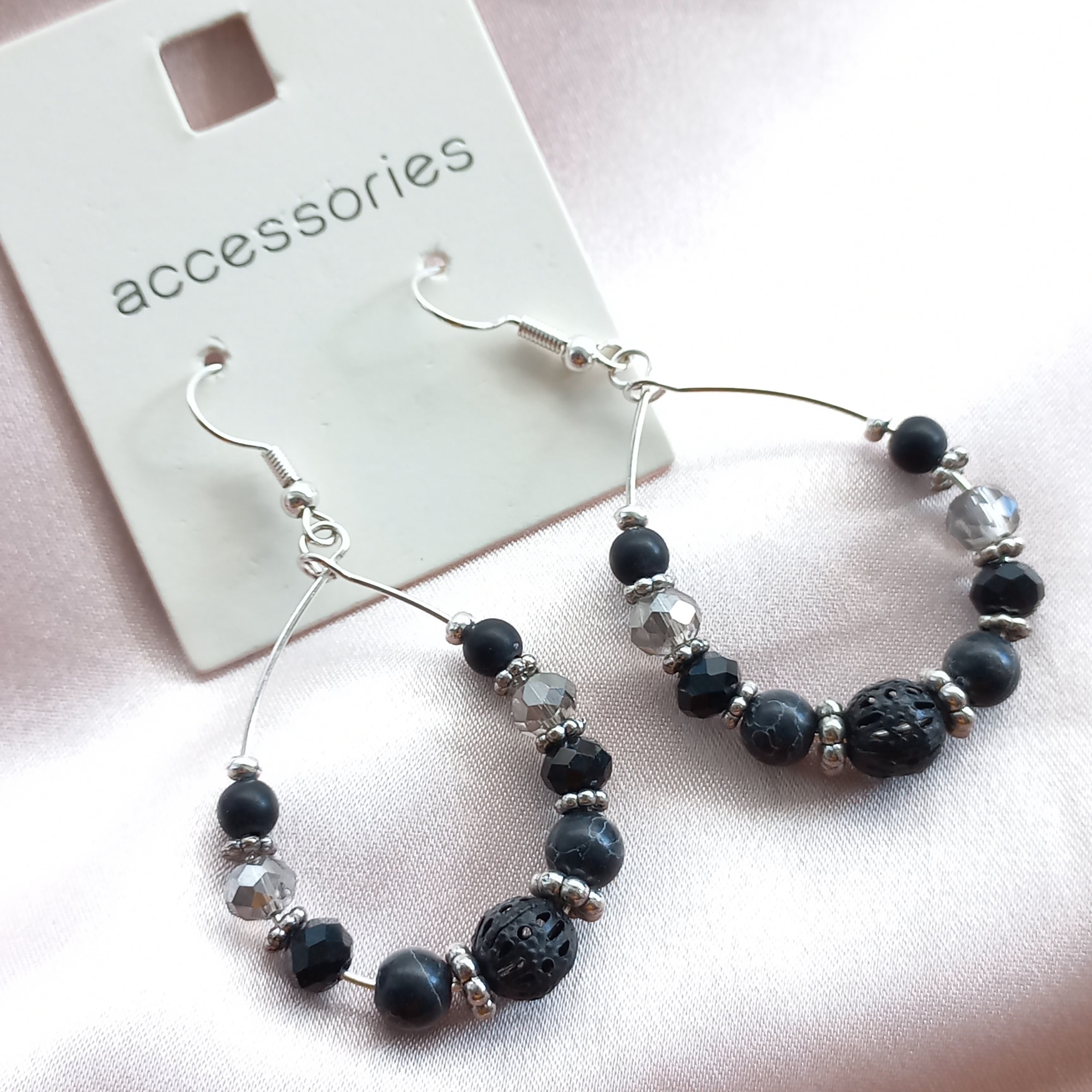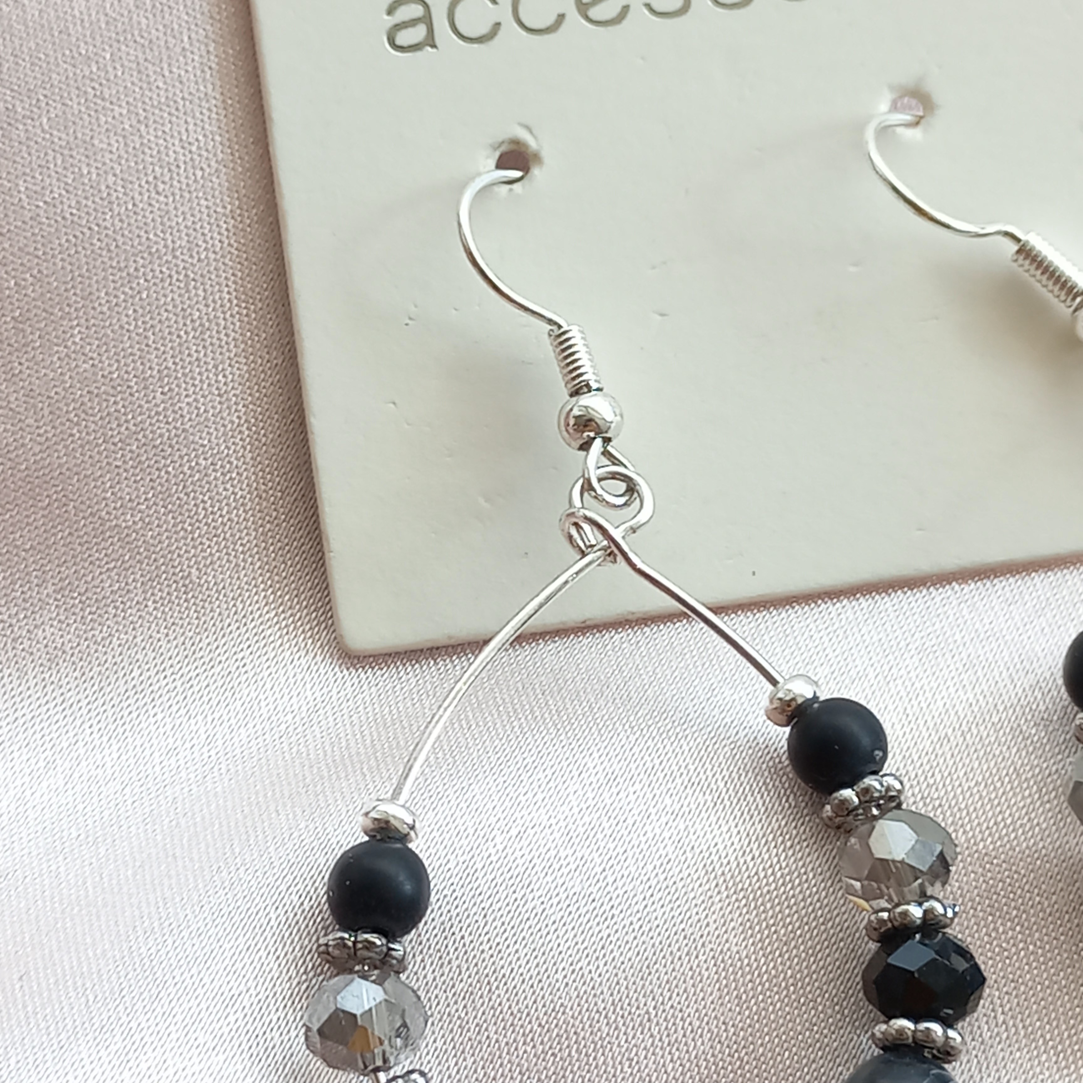 گوشواره زنانه آویز نقره ای مهره مشکی برند اروپایی accessories ضدحساسیت