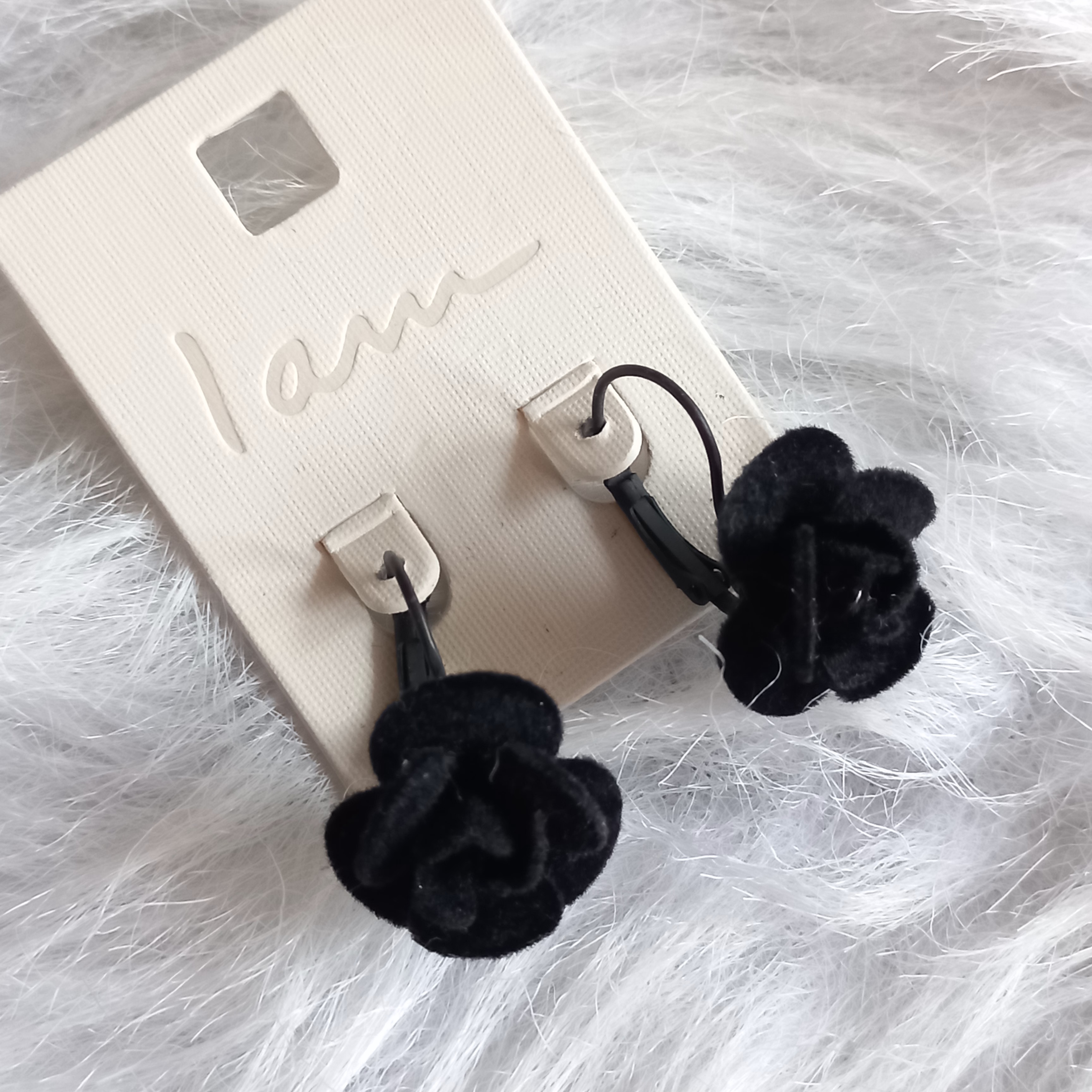 گوشواره زنانه آویز قفلی گل مخمل مشکی برند اروپایی Iam ضدحساسیت