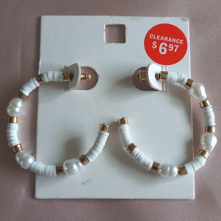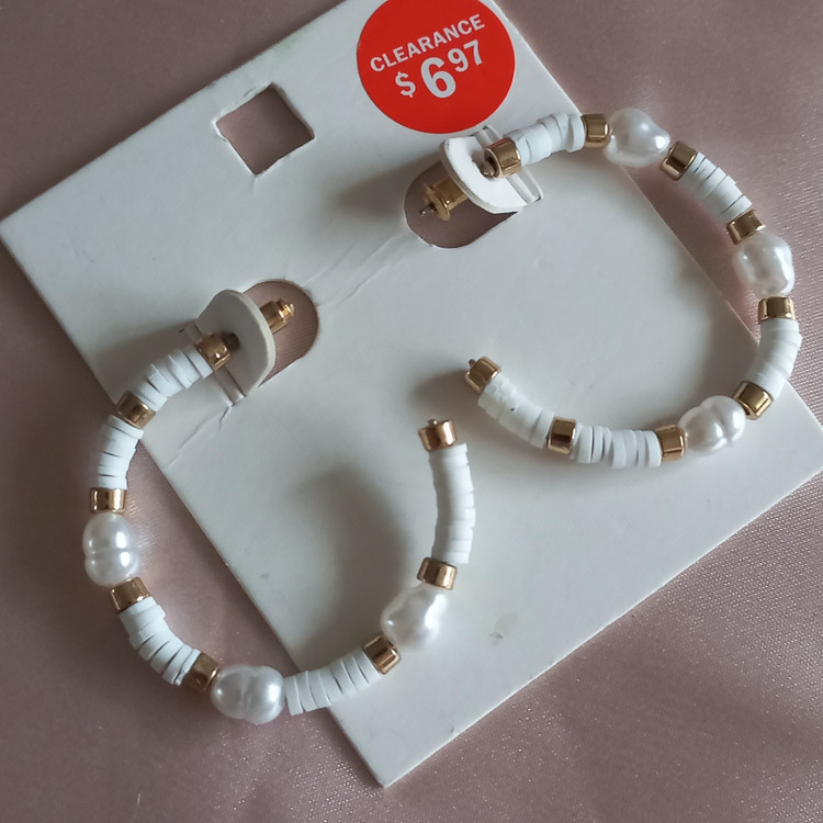 گوشواره زنانه میخی نیم حلقه مروارید و مهره سفید و طلایی برند اروپایی ضدحساسیت