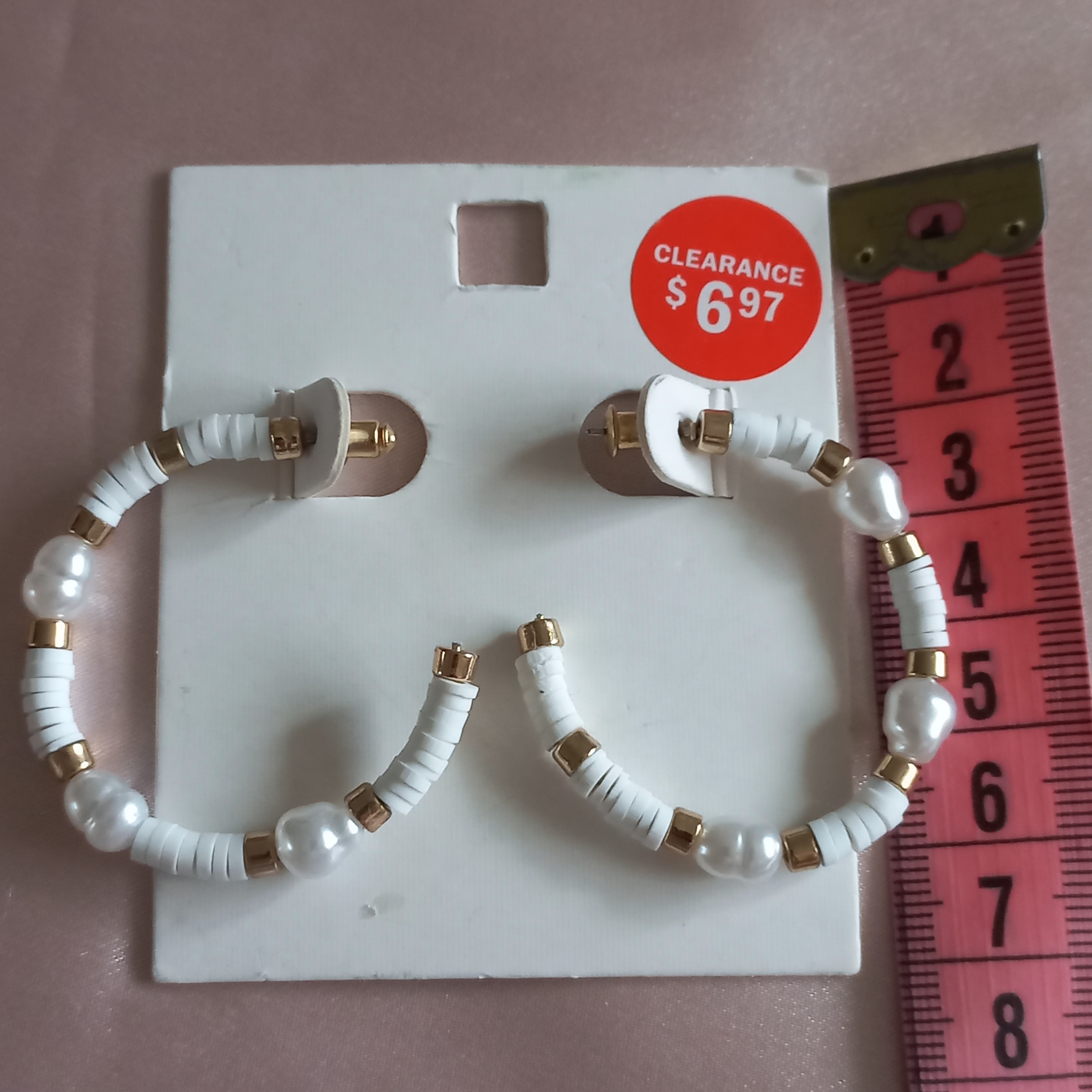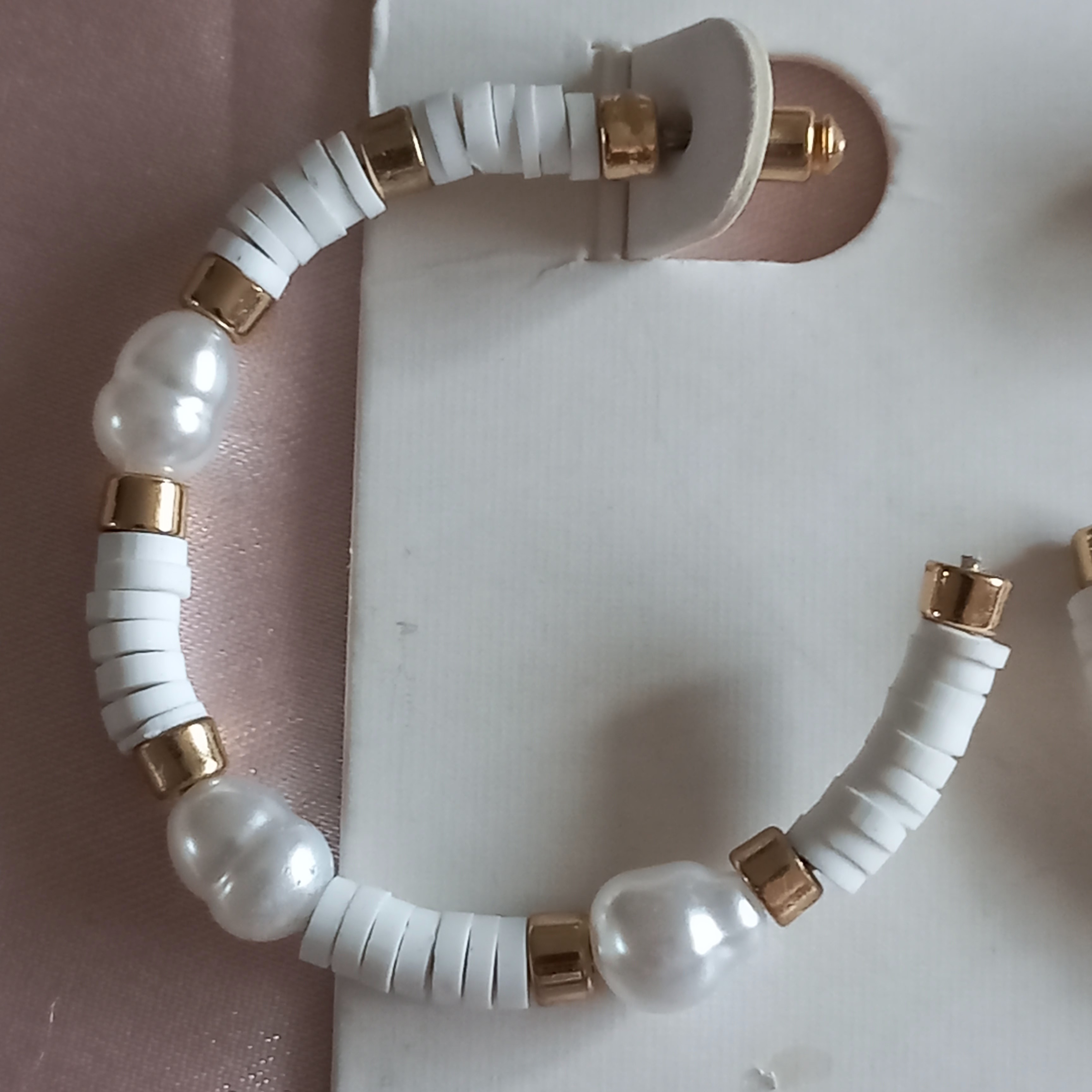 گوشواره زنانه میخی نیم حلقه مروارید و مهره سفید و طلایی برند اروپایی ضدحساسیت