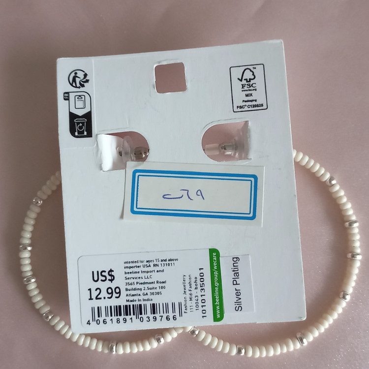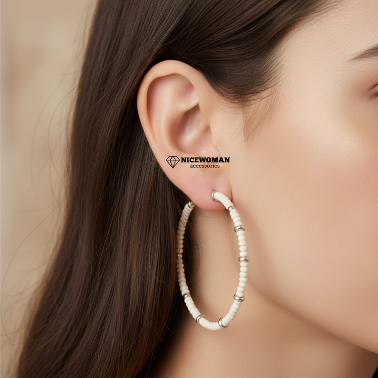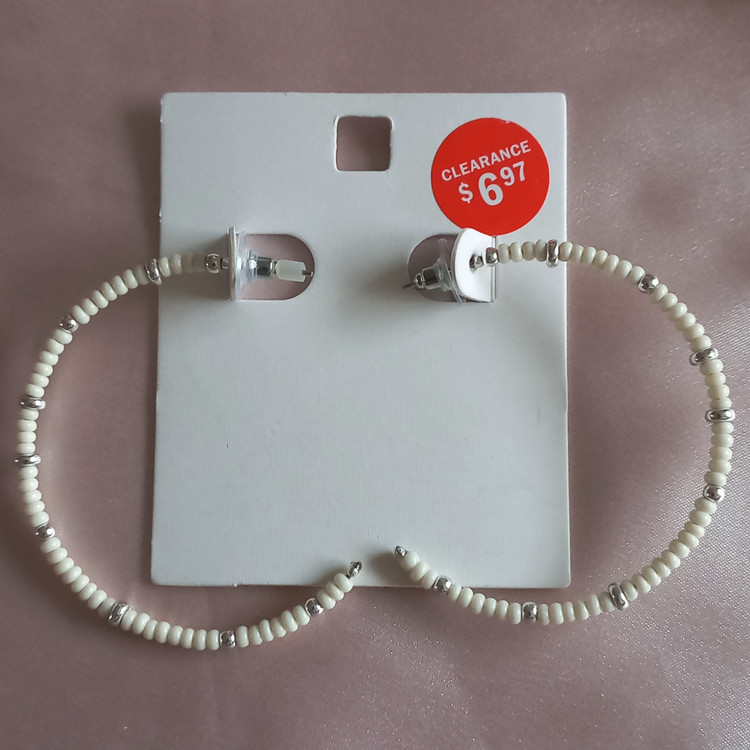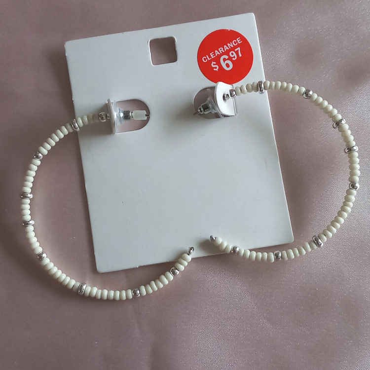 گوشواره زنانه میخی نیم حلقه مهره سفید نقره ای برند اروپایی ضدحساسیت