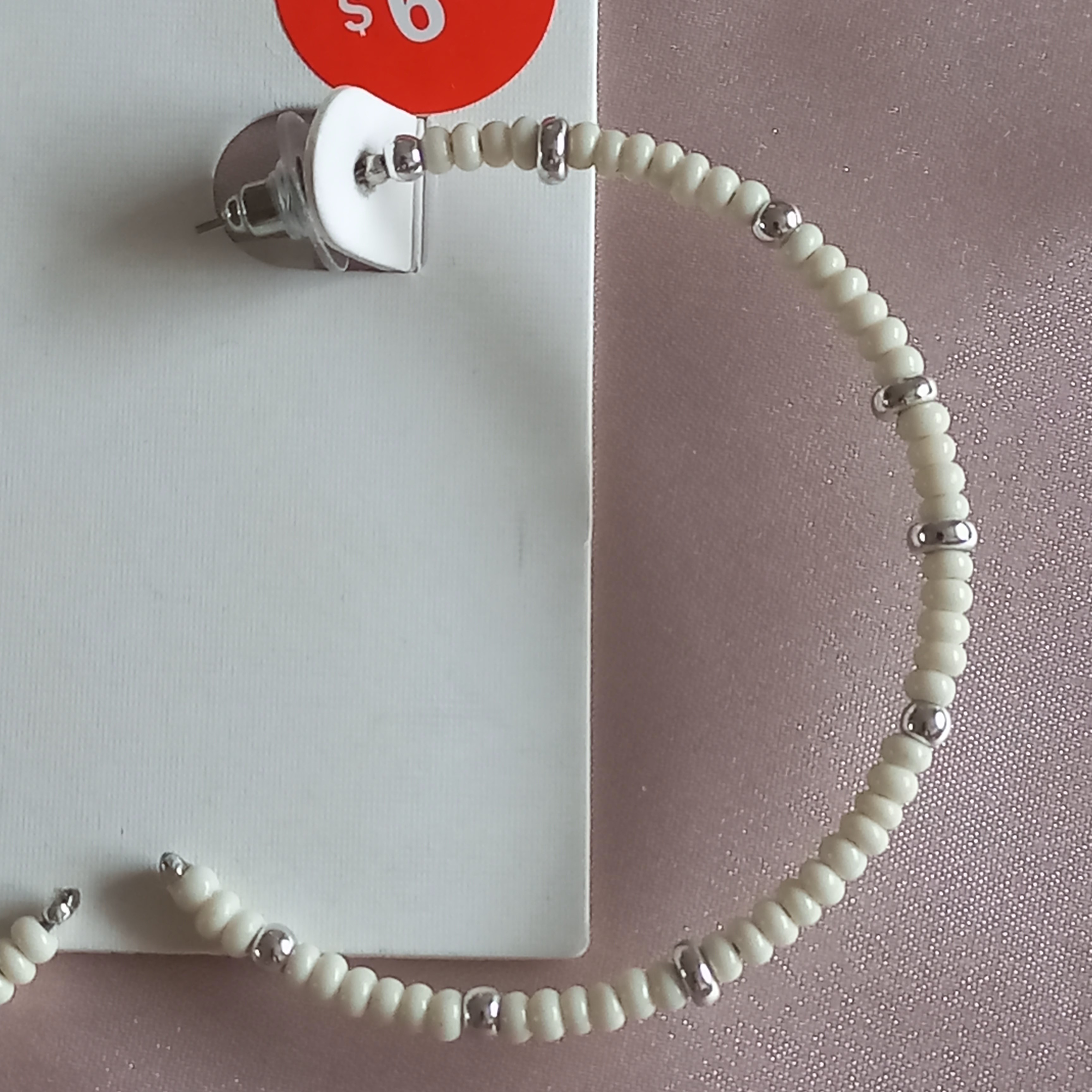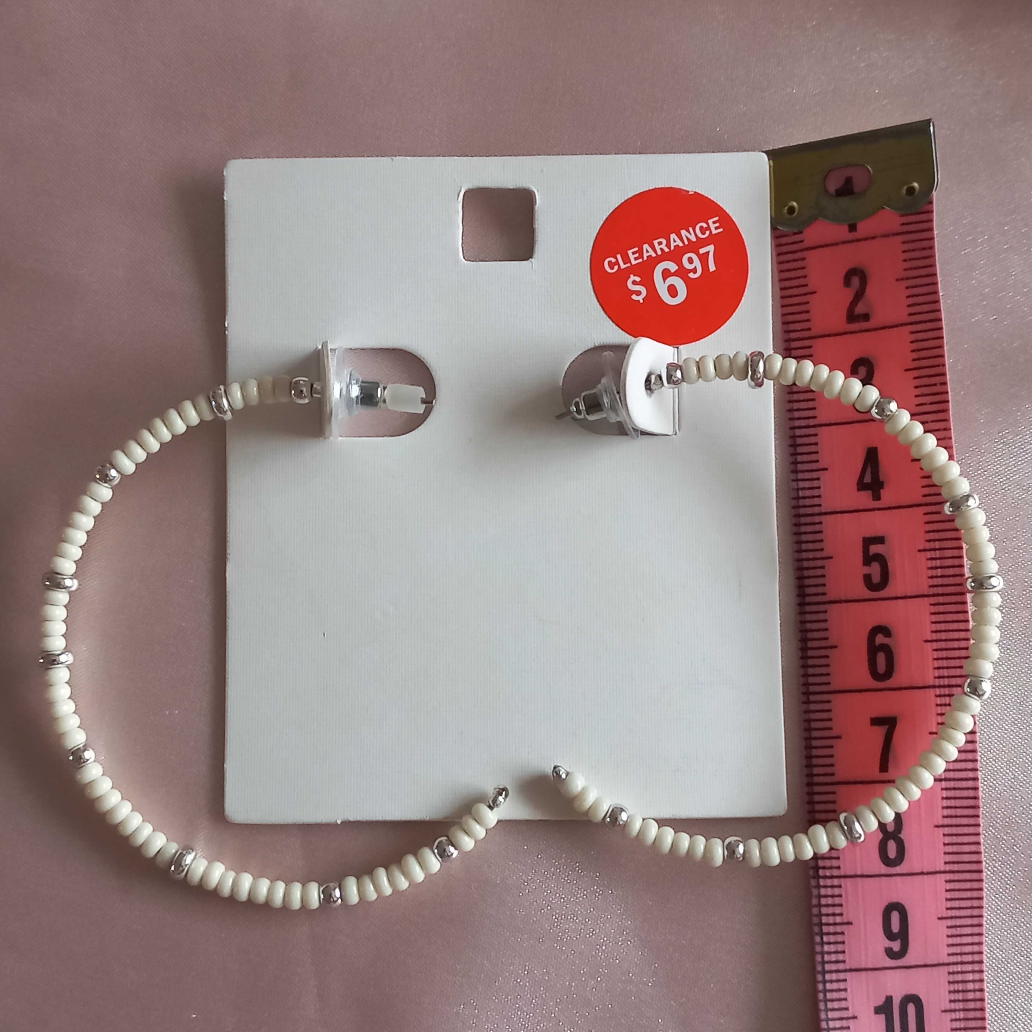 گوشواره زنانه میخی نیم حلقه مهره سفید نقره ای برند اروپایی ضدحساسیت
