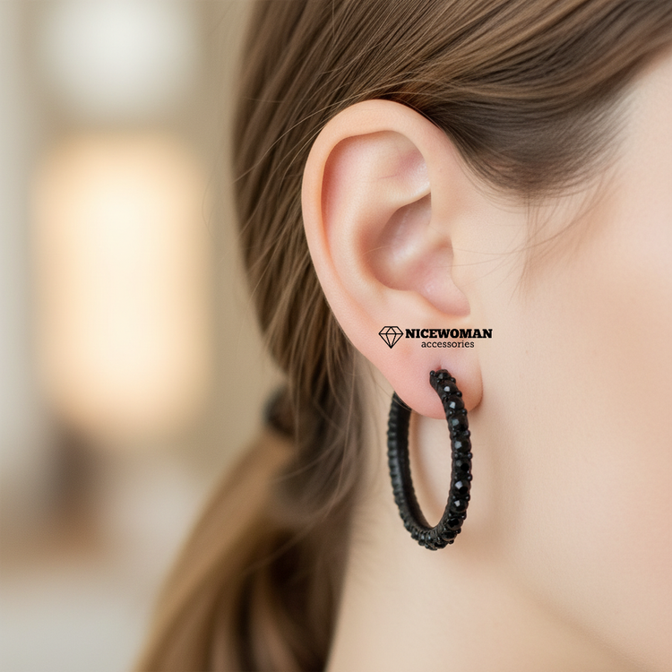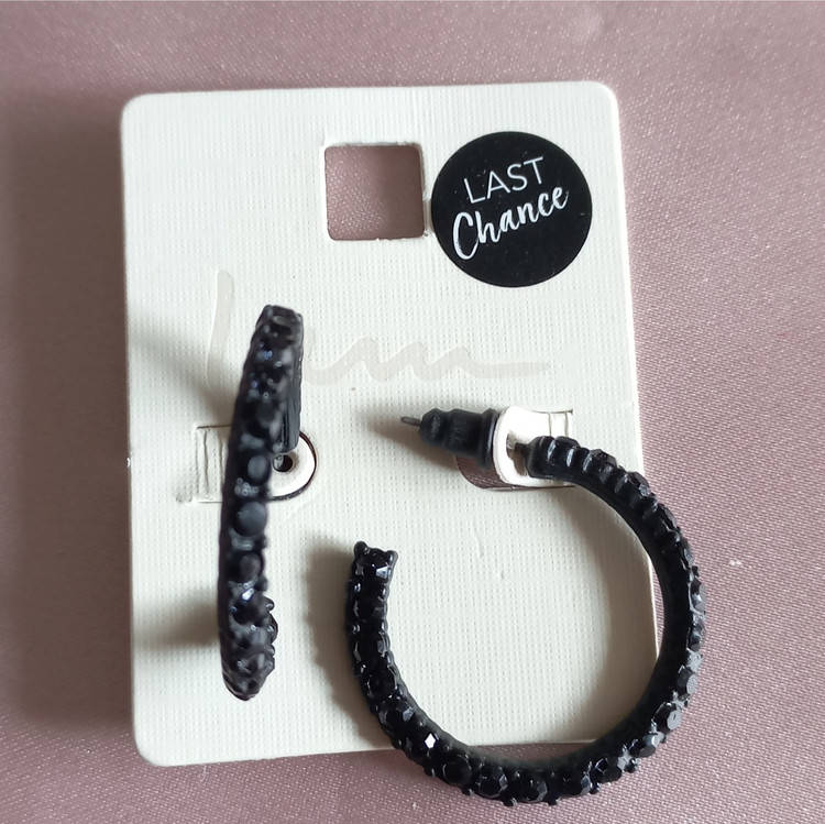 گوشواره زنانه میخی نیم حلقه نگین دار مشکی برند اروپایی Iam ضدحساسیت