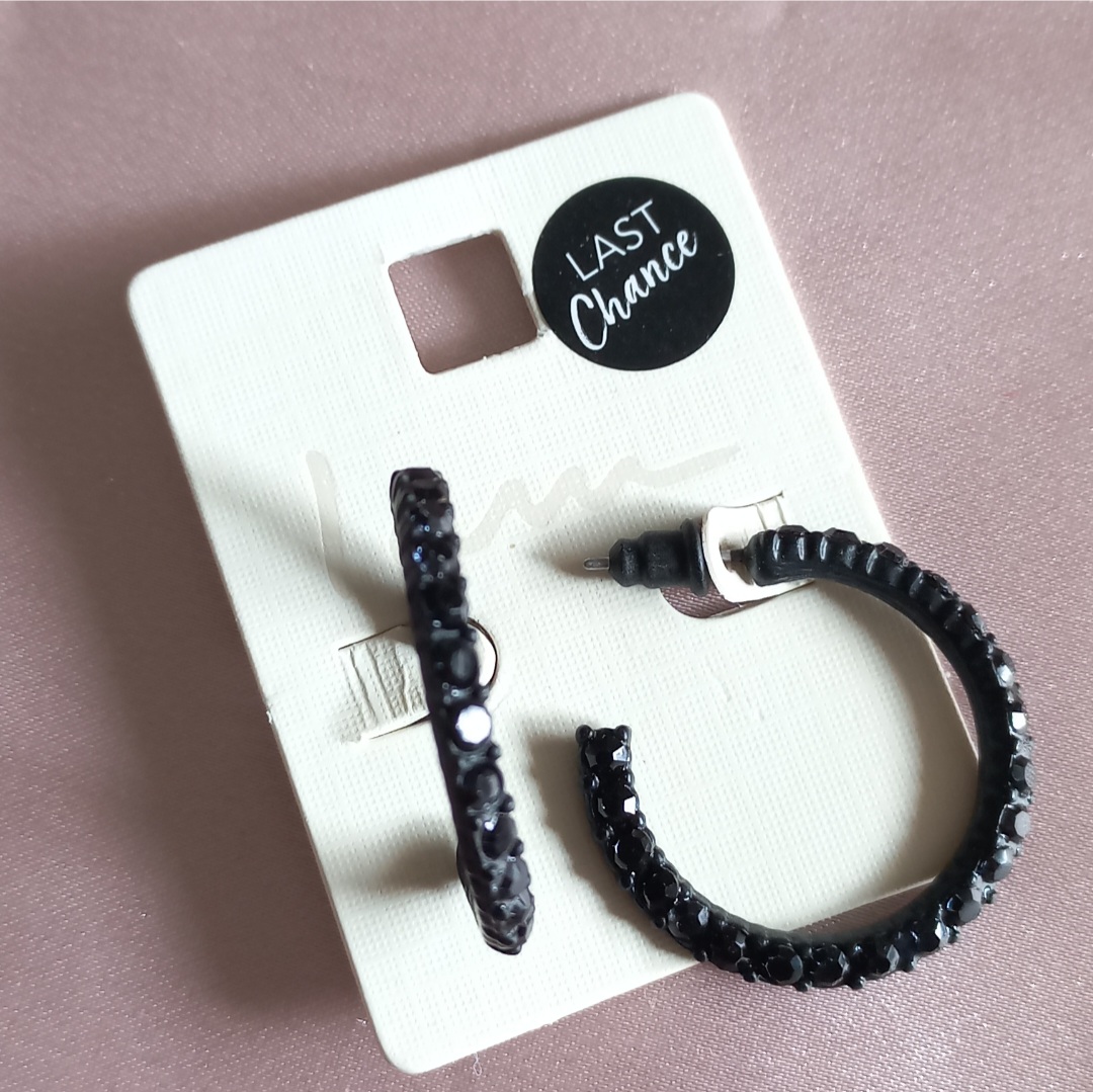 گوشواره زنانه میخی نیم حلقه نگین دار مشکی برند اروپایی Iam ضدحساسیت