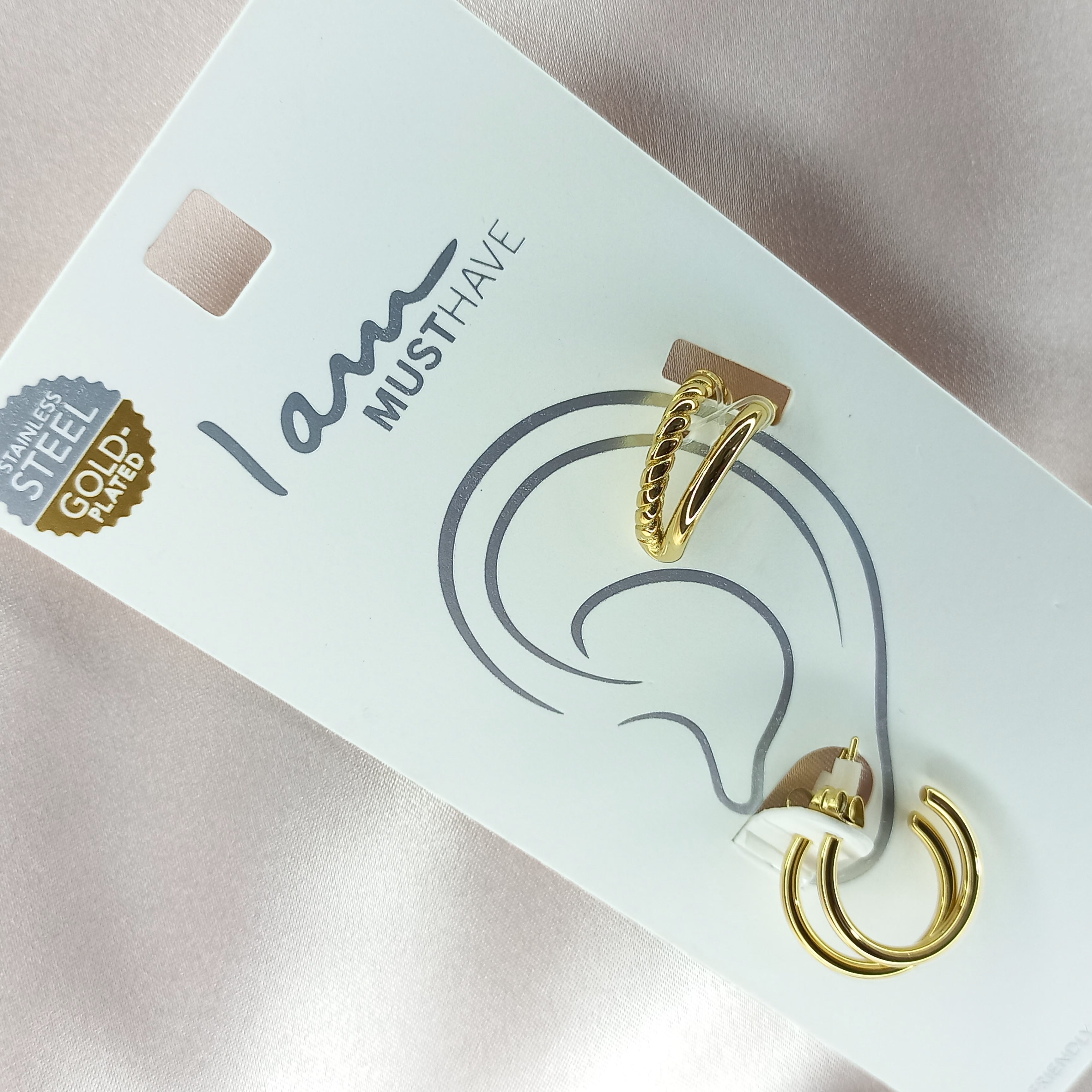 پک ایرکاف و گوشواره زنانه استیل روکش طلا برند اروپایی Iam ضدحساسیت