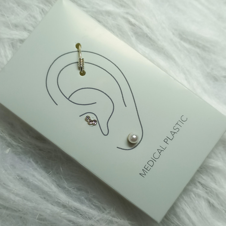 پرسینگ زنانه گوش میخی ایرکاف نقره مروارید نگین پلاستیک پزشکی برند اروپایی Iam ضدحساسیت