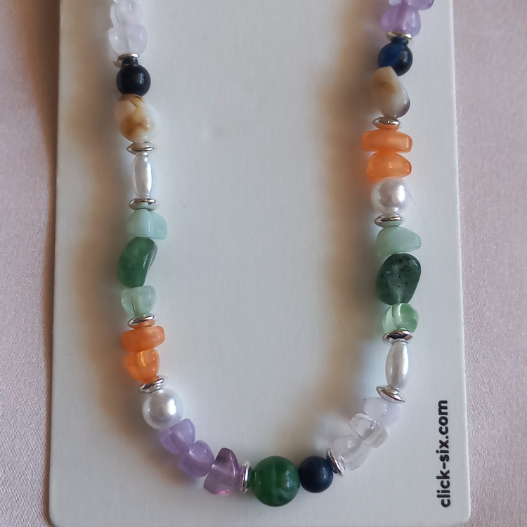 گردنبند زنانه مروارید سنگ رنگی برند اروپایی six ضدحساسیت