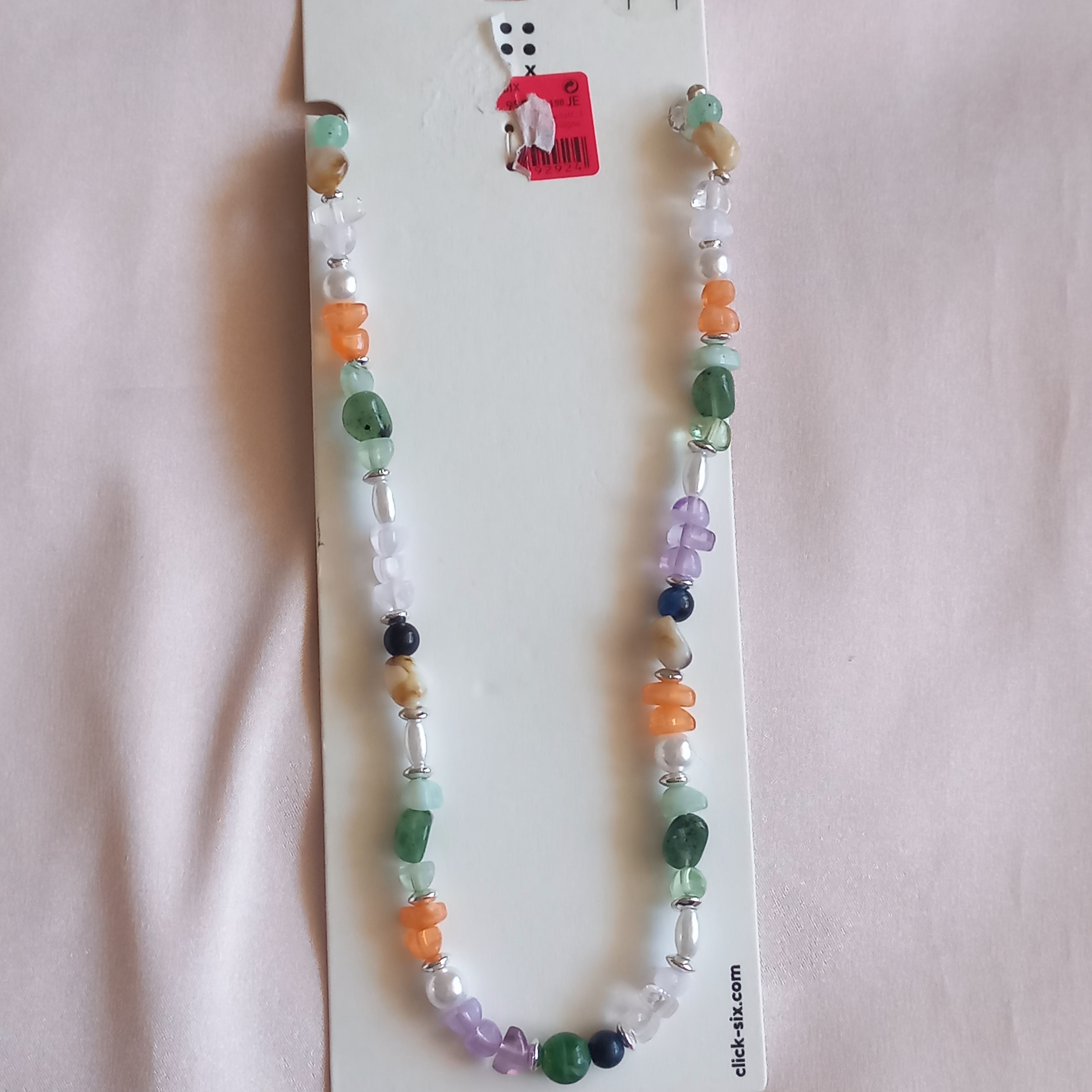 گردنبند زنانه مروارید سنگ رنگی برند اروپایی six ضدحساسیت