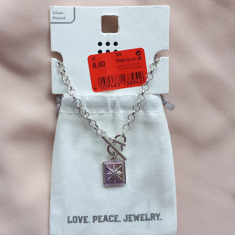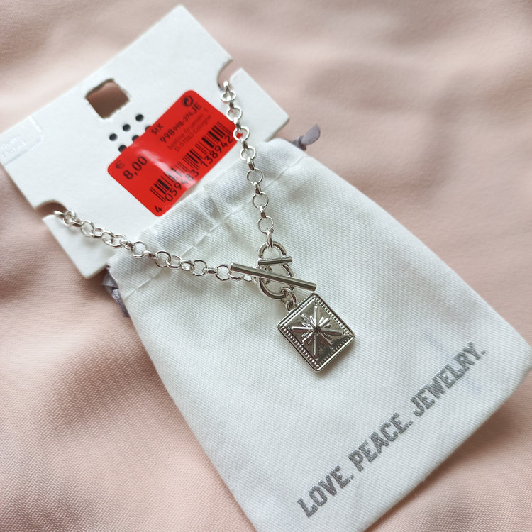 گردنبند زنانه آویزدار قفلی روکش نقره برند اروپایی six ضدحساسیت