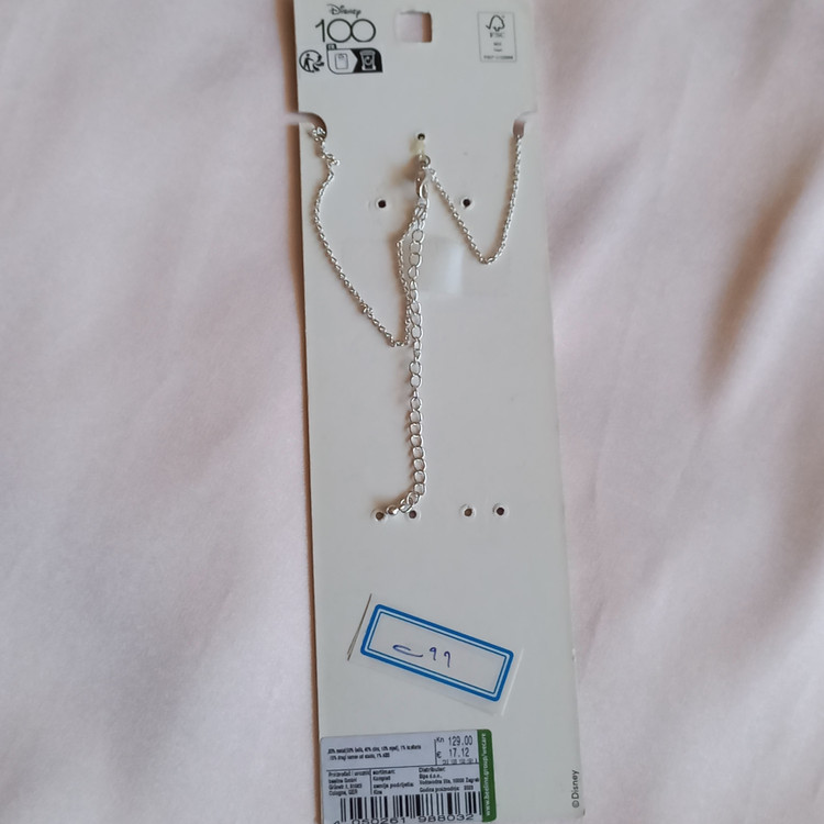 گردنبند دخترانه آویز سیندرلا نگین دار نقره ای برند اروپایی Disney ضدحساسیت