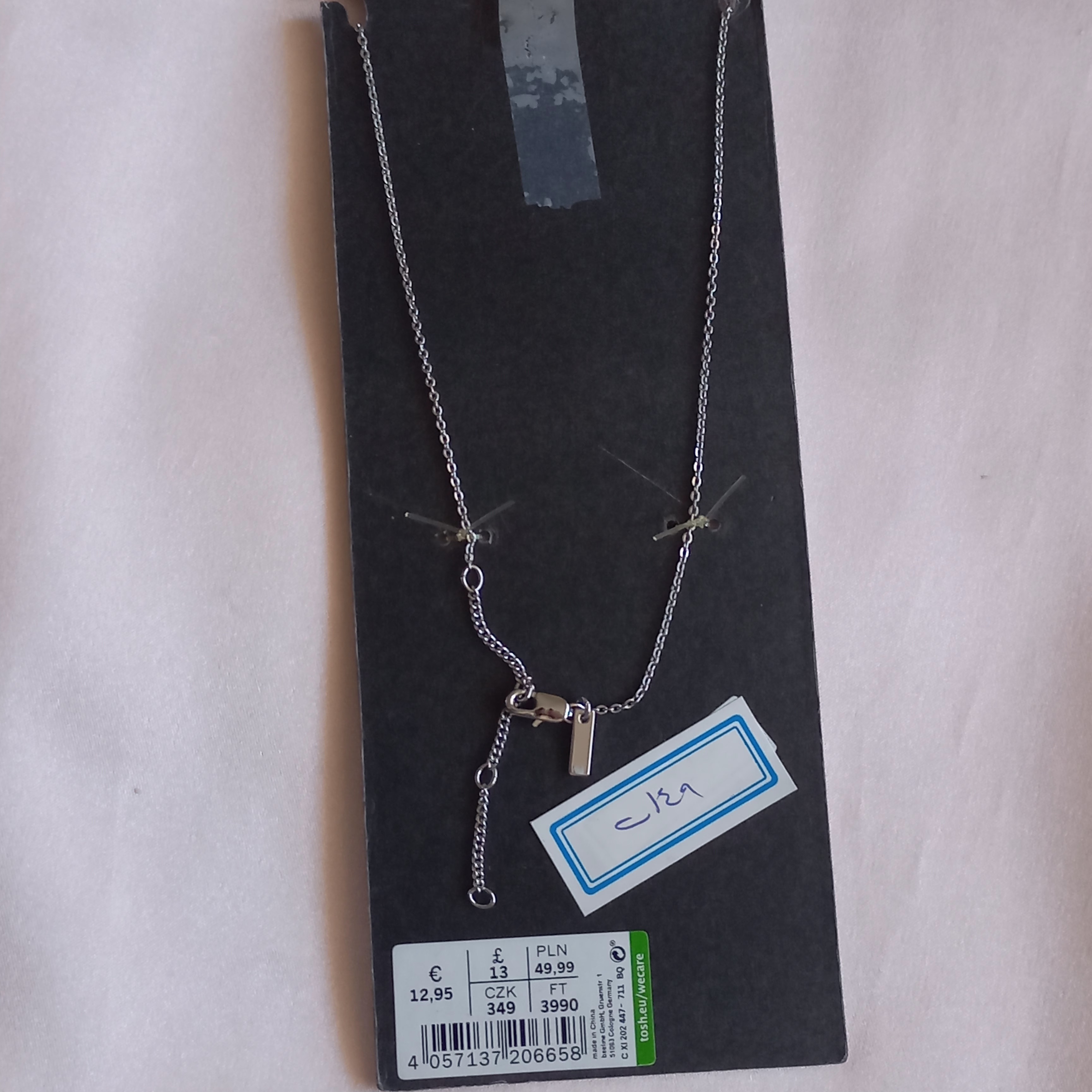 گردنبند زنانه آویز مشکی نقره ای برند اروپایی TOSH ضدحساسیت