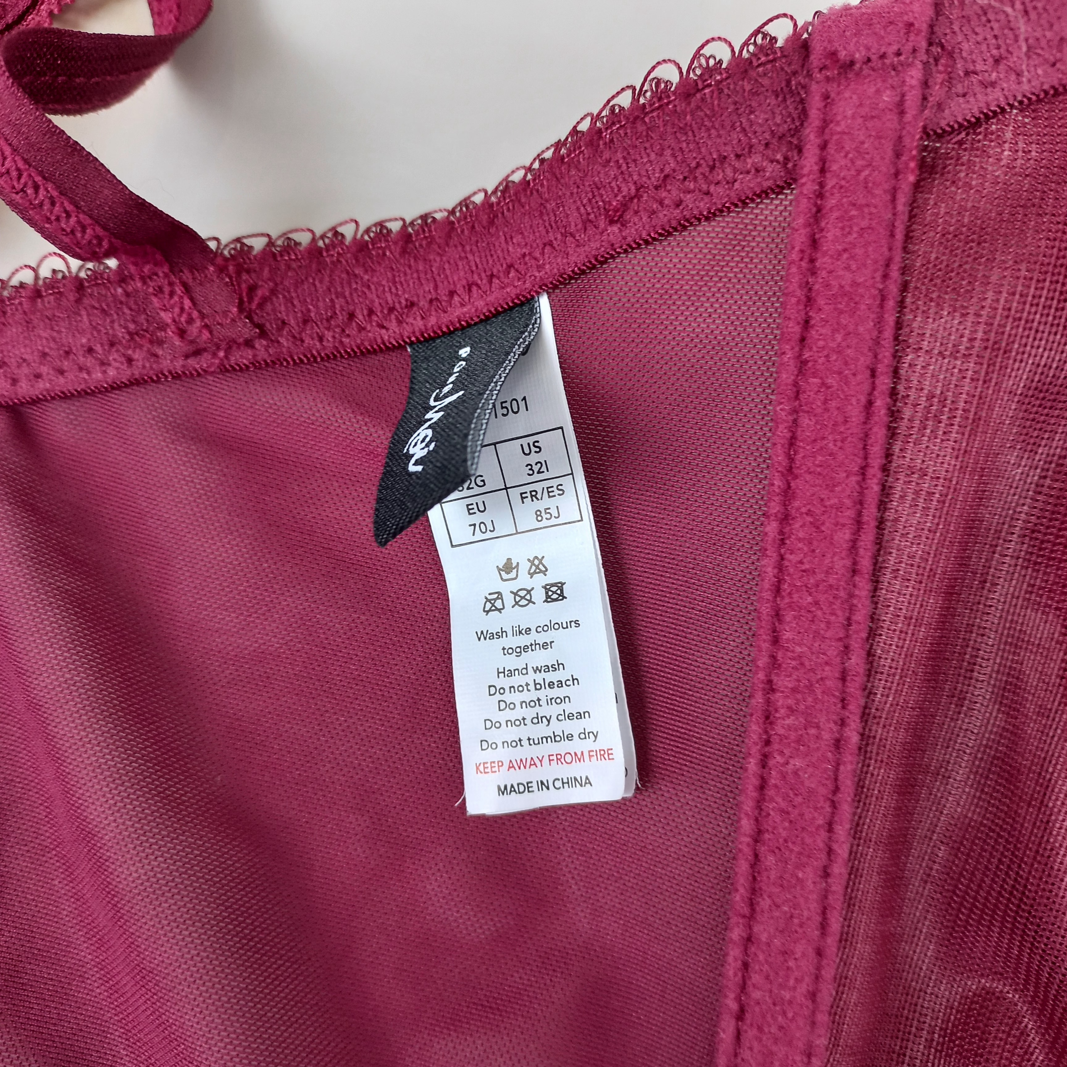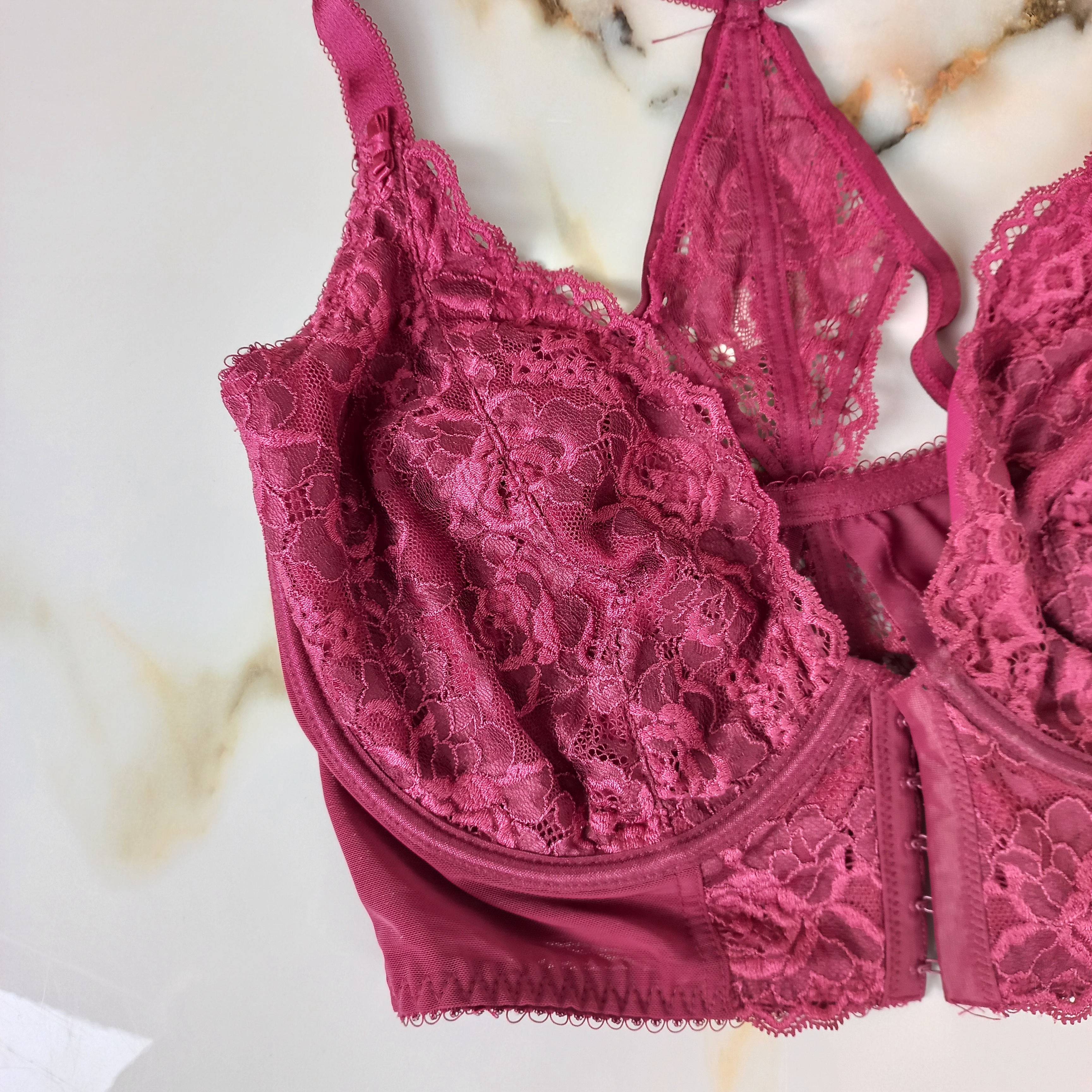 سوتین زنانه فنردار توری زرشکی جلوبازشو برند اروپایی POUR MOI سایز 70J