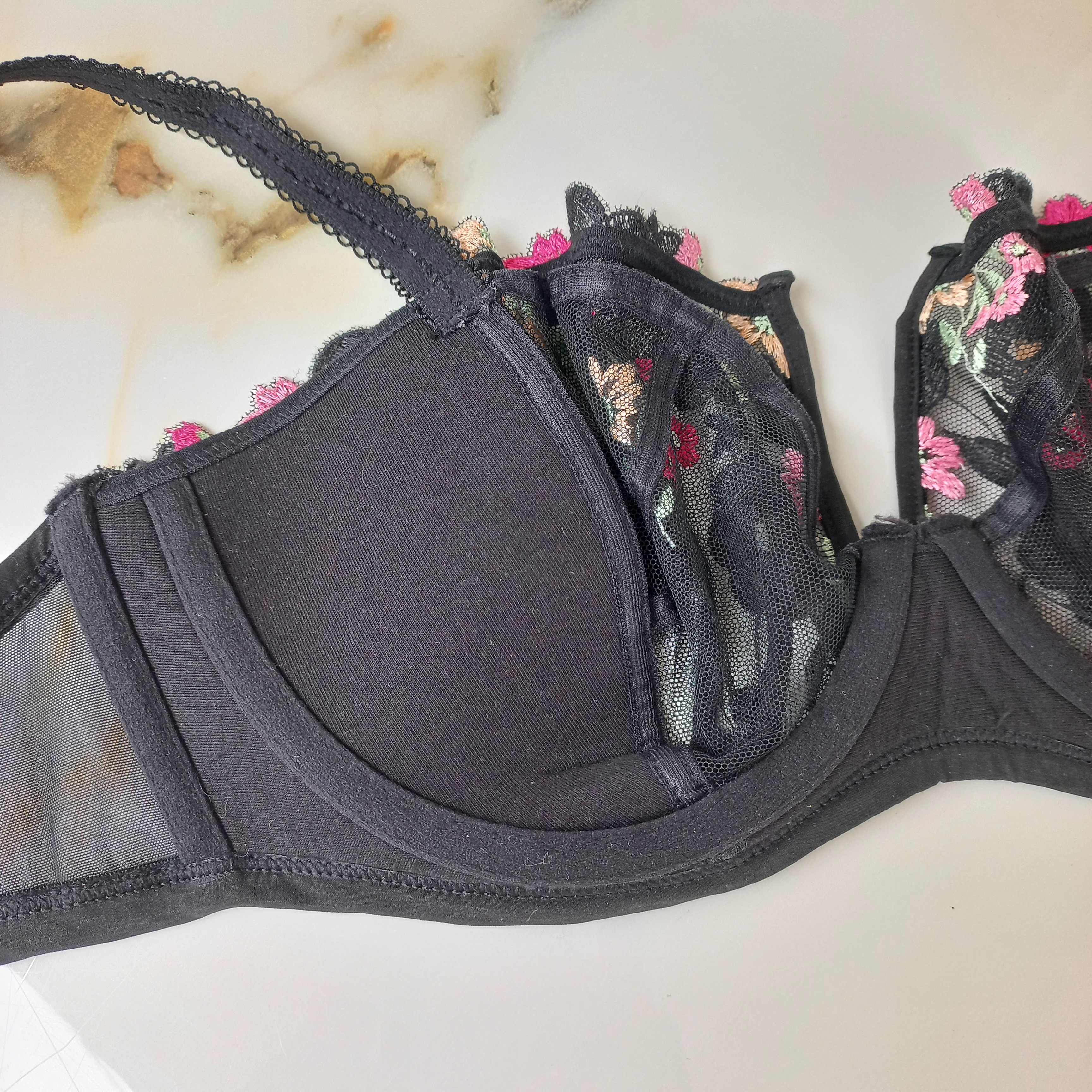 سوتین زنانه فنردار توری مشکی گلدار برند اروپایی