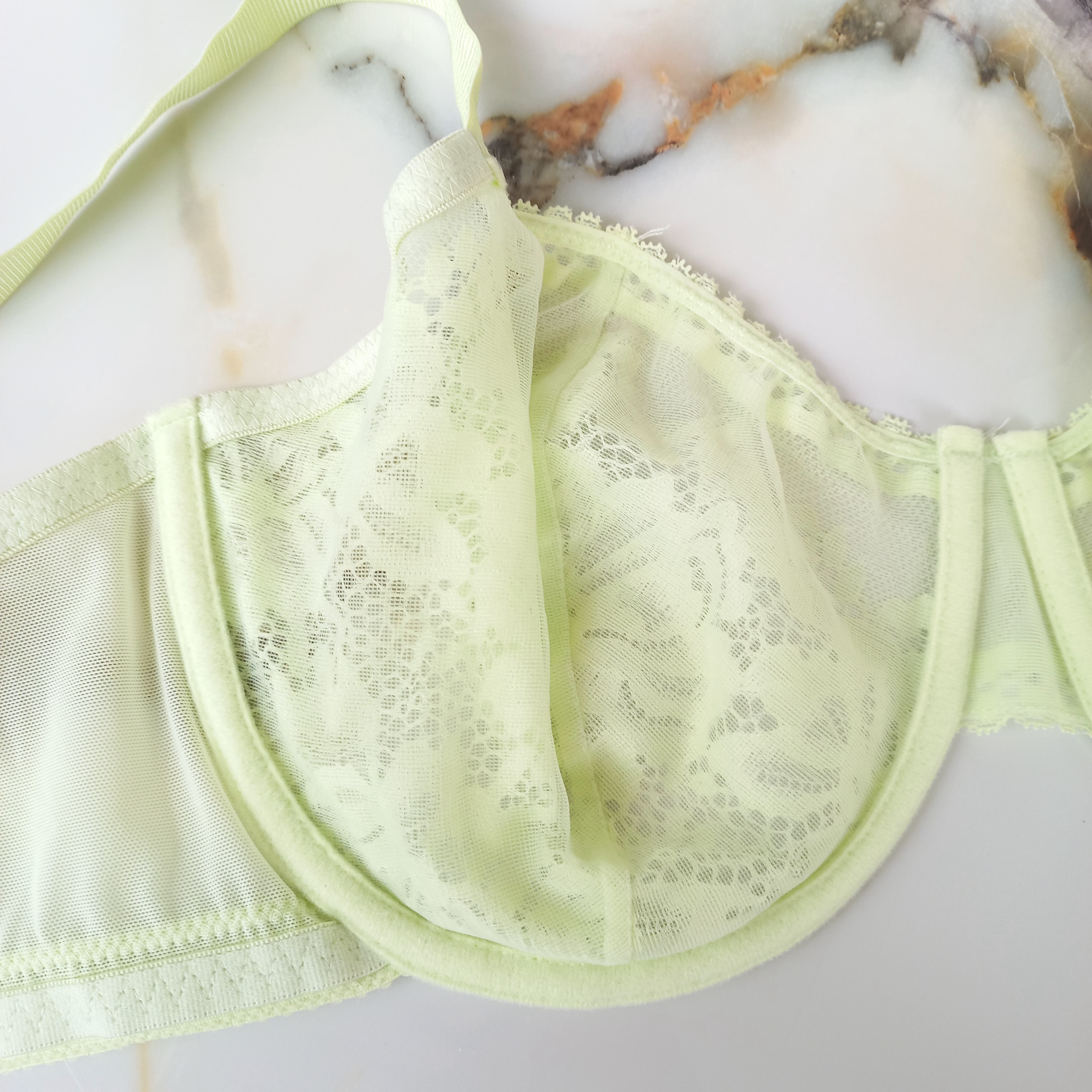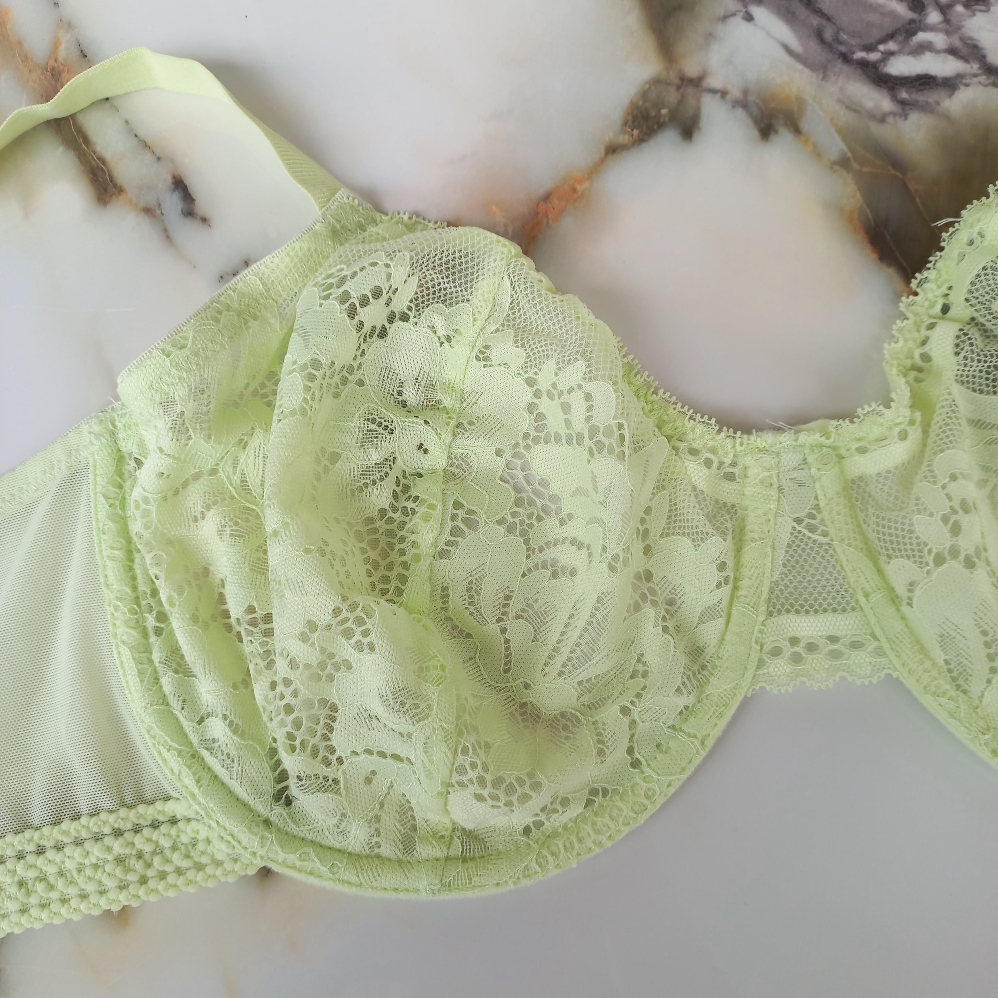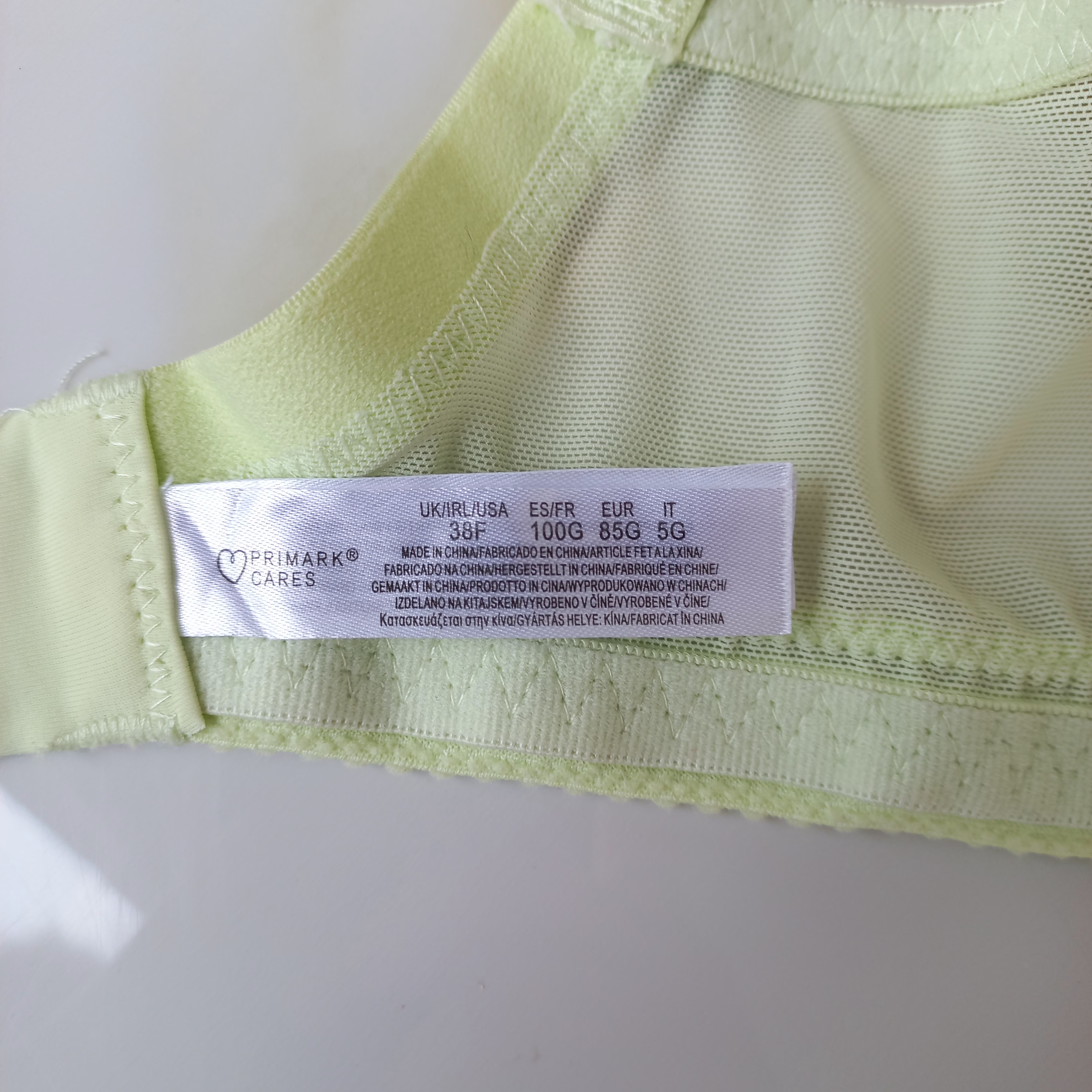 سوتین زنانه فنردار توری سبز فسفری برند اروپایی PRIMARK سایز 85G