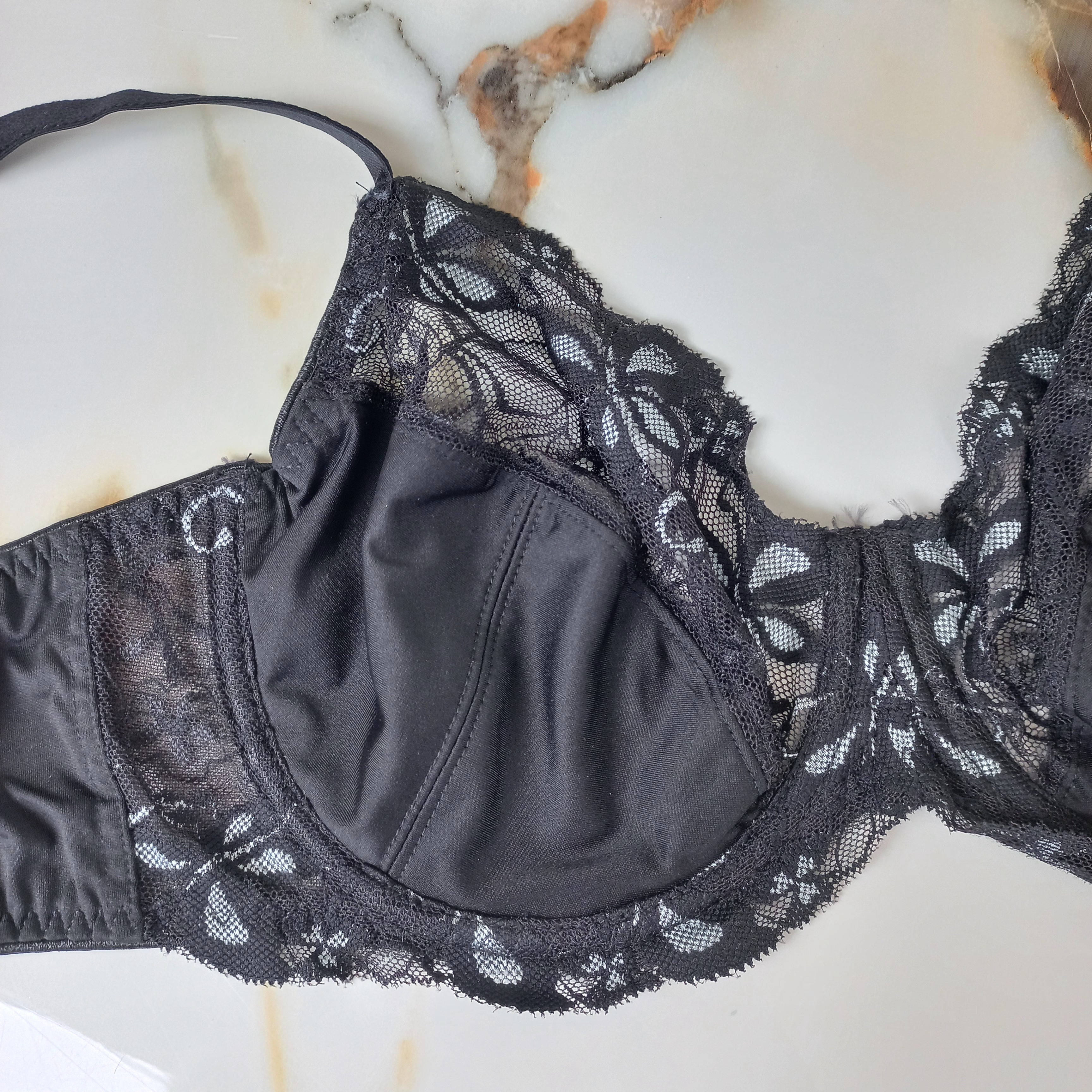 سوتین زنانه فنردار پلی استر توری مشکی برند اروپایی BODYFLIRT سایز 95B
