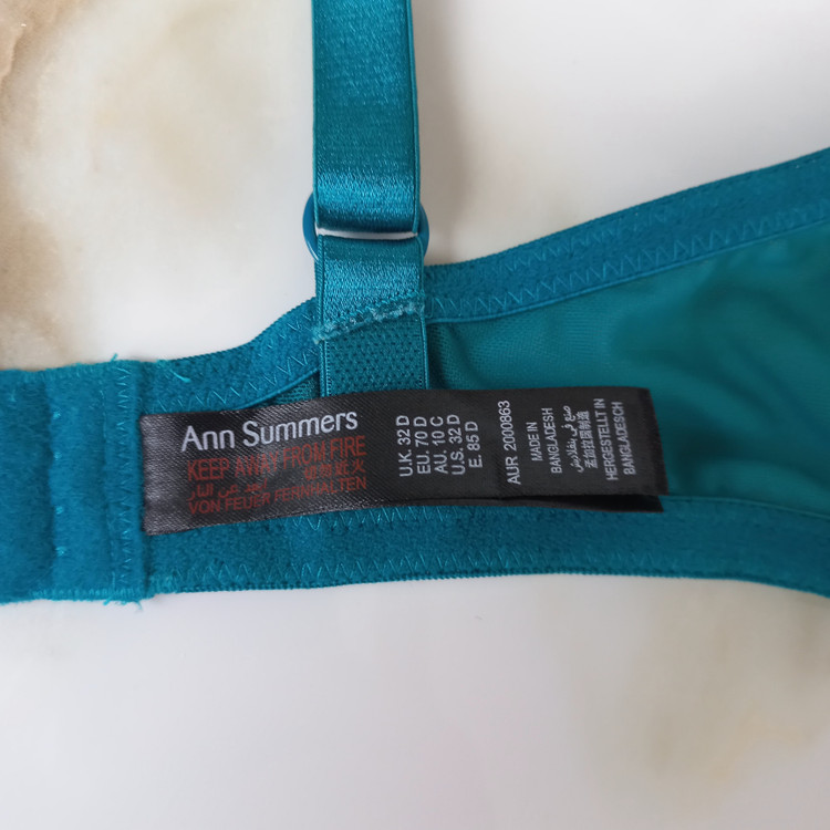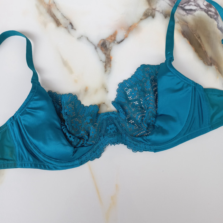 سوتین زنانه فنردار ساتن توری سبز آبی برند اروپایی Ann Summers