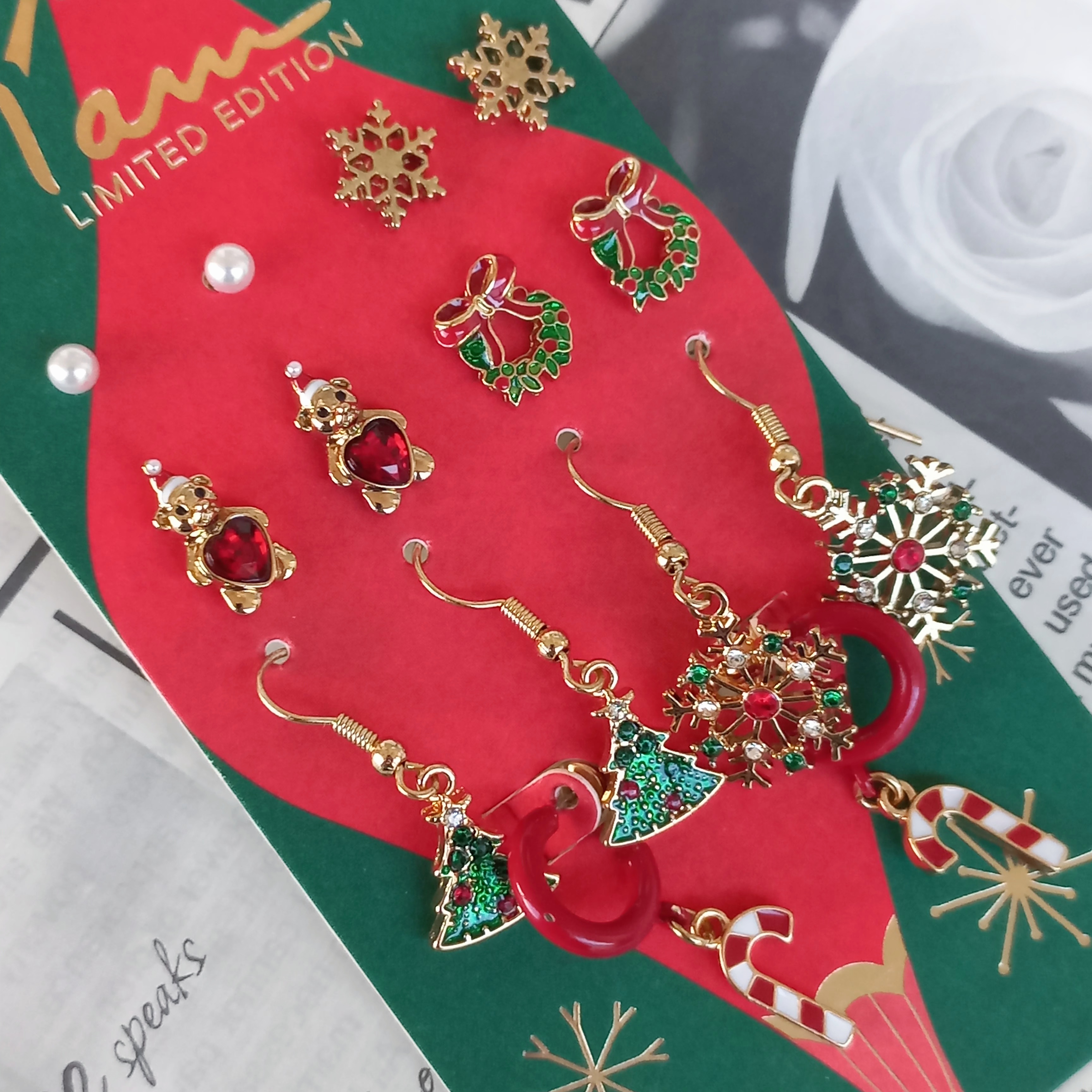 پک گوشواره میخی و آویز کریسمس برند اروپایی Iam ضدحساسیت