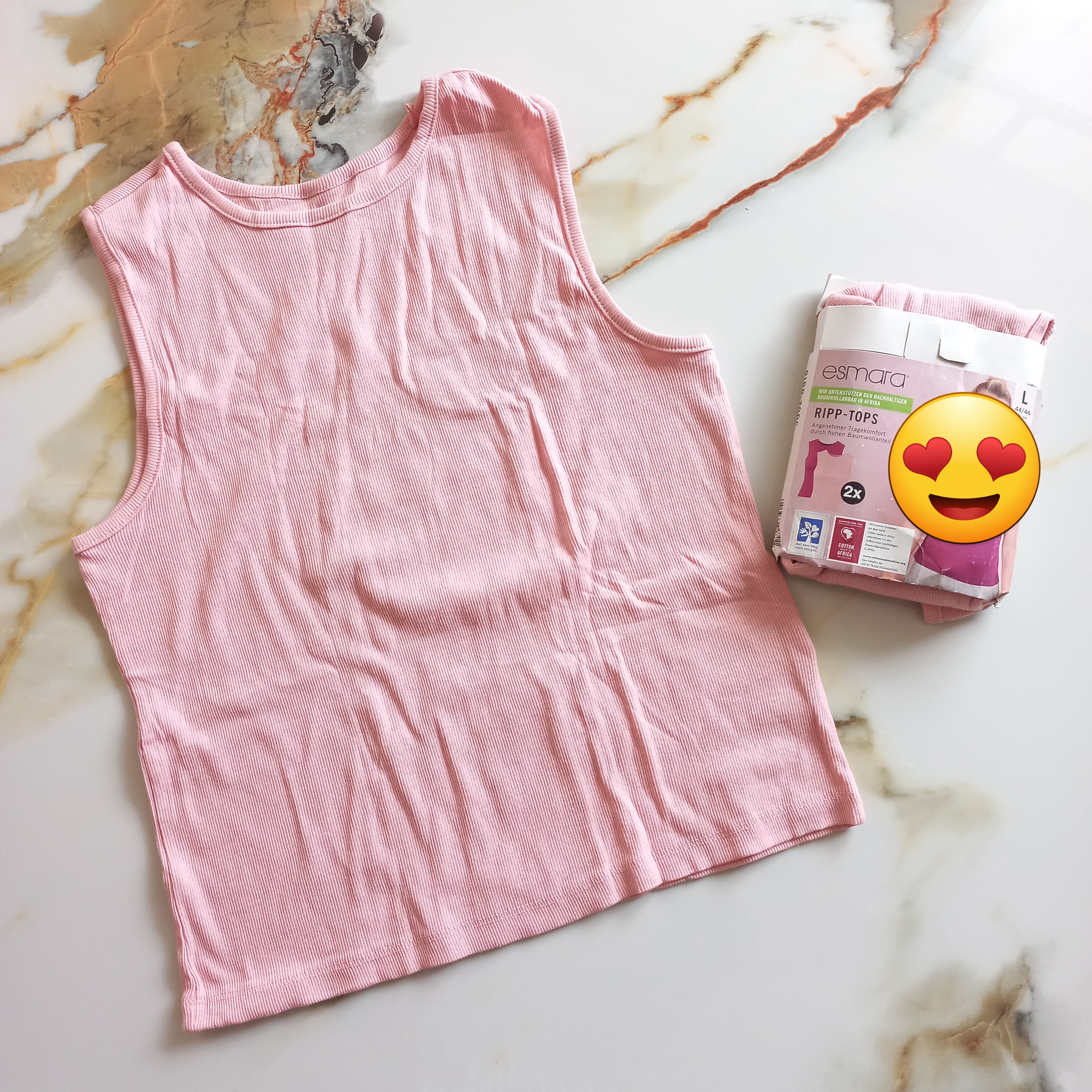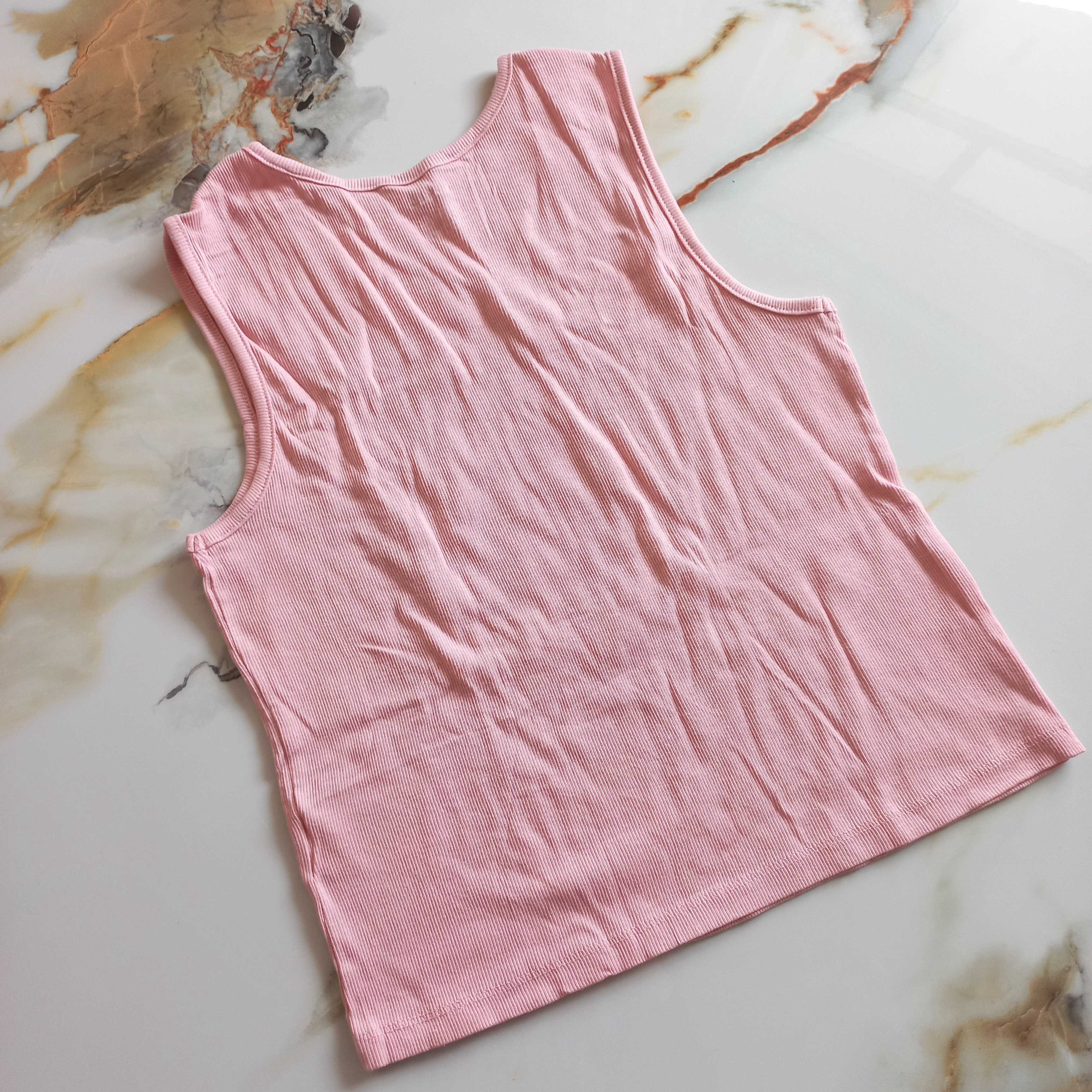 تاپ زنانه آستین حلقه ای نخی کبریتی صورتی کمرنگ برند اروپایی اسمارا آلمانی