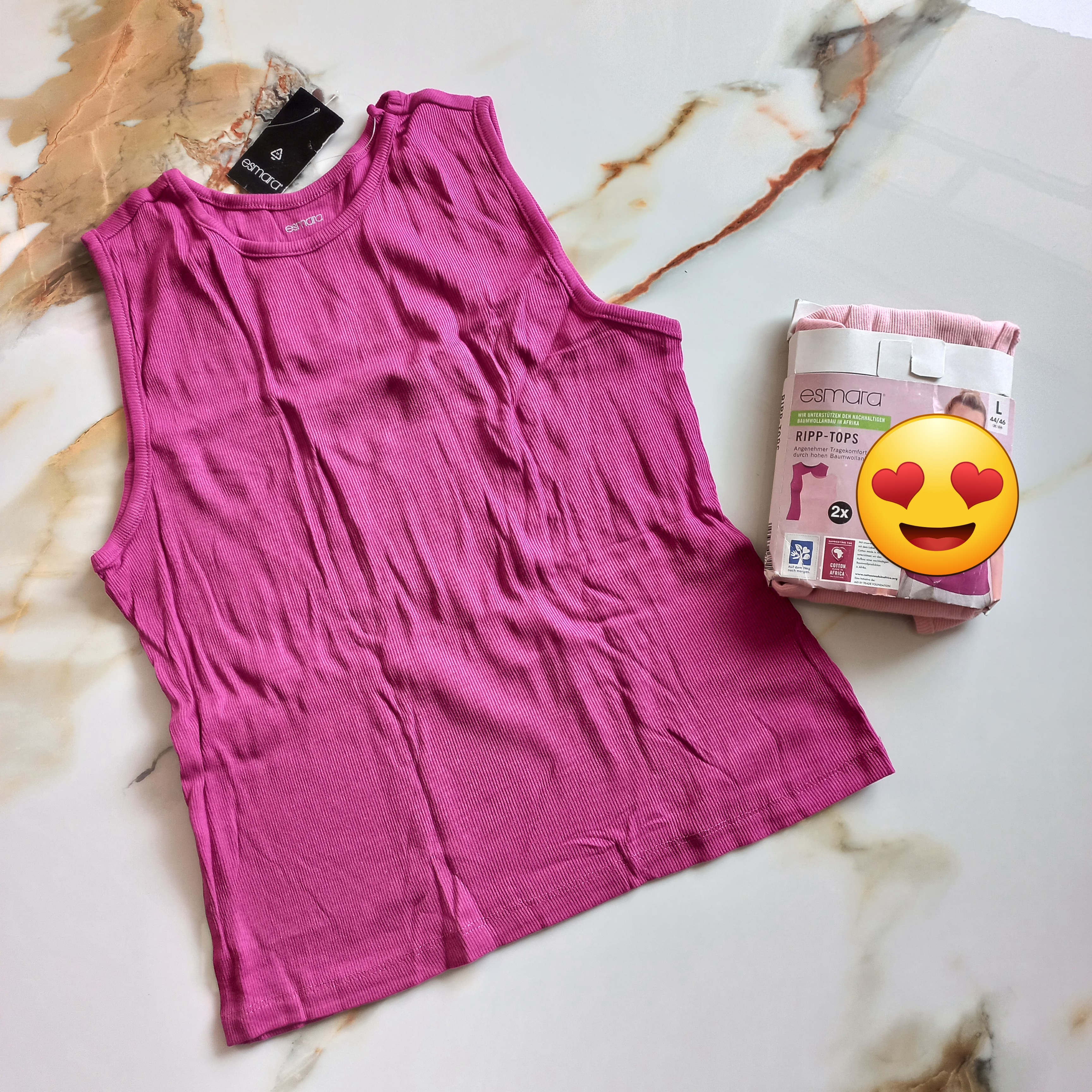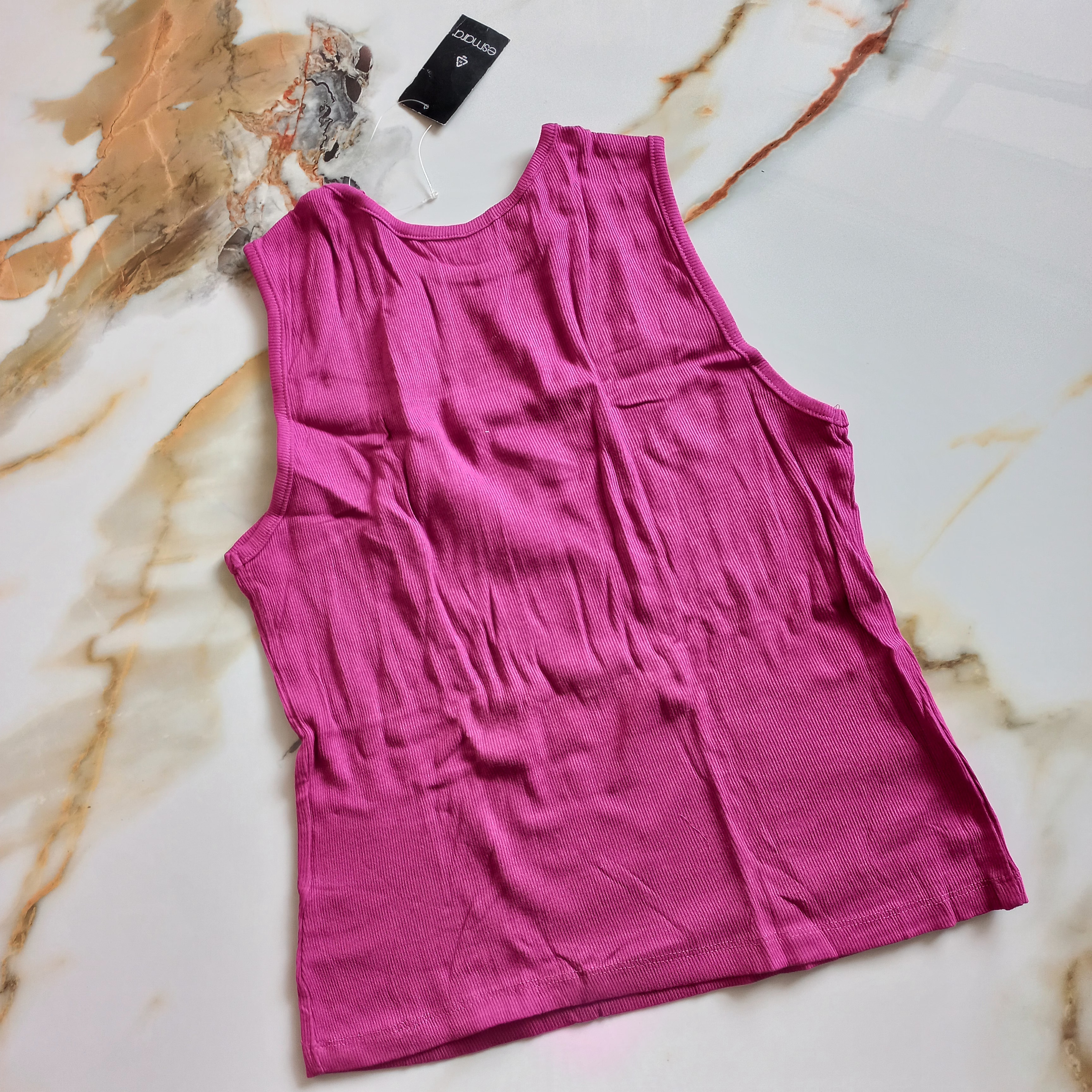 تاپ زنانه آستین حلقه ای نخی کبریتی صورتی بنفش برند اروپایی اسمارا آلمانی